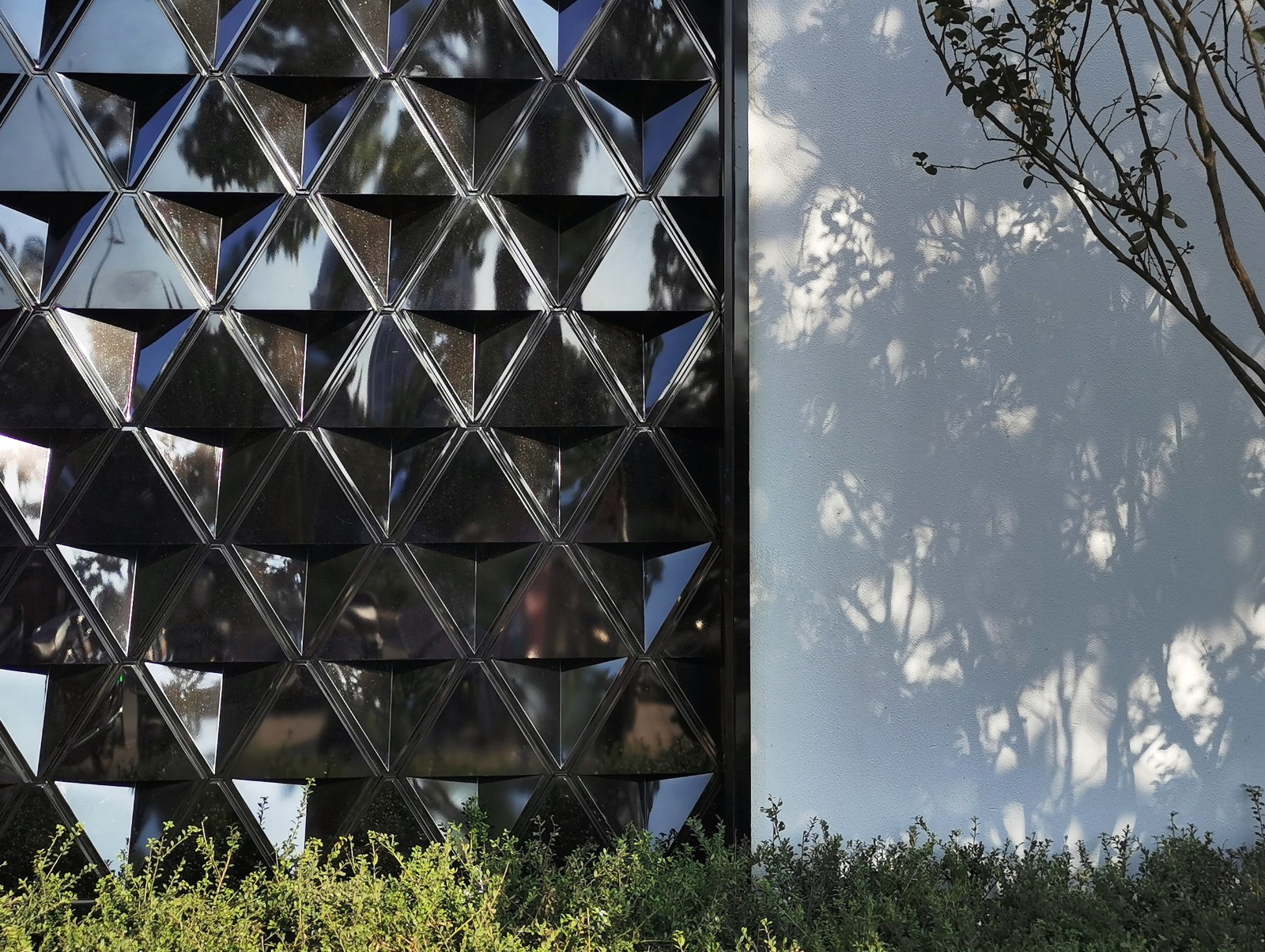 醉心于生活的人们总能发现新鲜的事物,沿街景墙混凝土几何压槽成菱形鹤羽形态,组成的暗纹烘托呼应建筑界面动态,凸显设计细腻质感,激发路人好奇感。