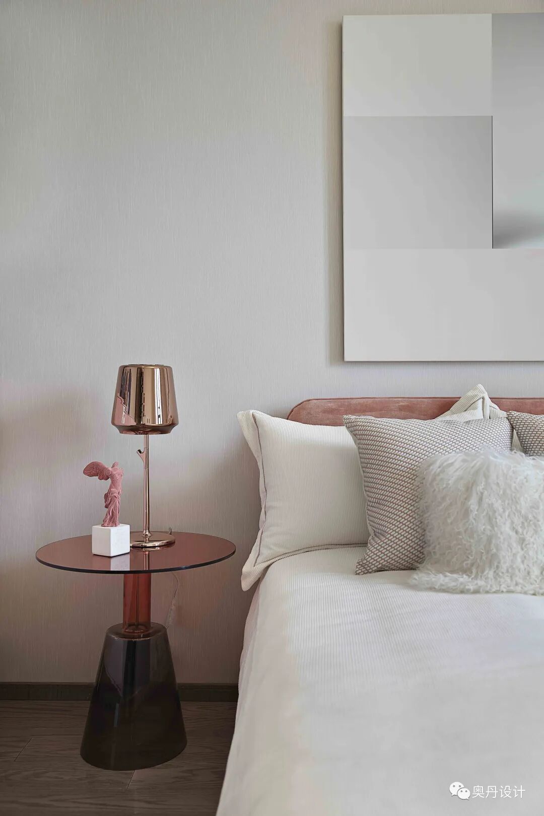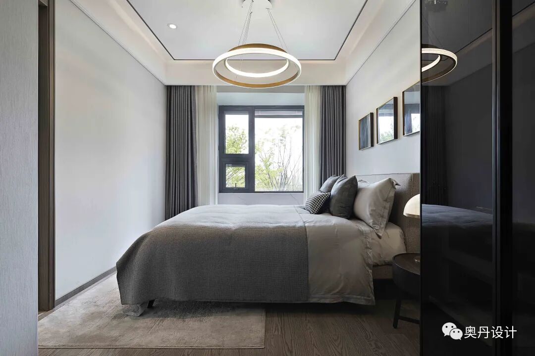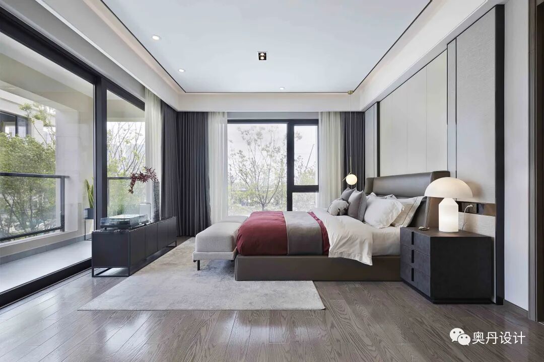 好的空间设计就像优美的文章,详略得当、错落有致,整体和谐,引人入胜,让人精神愉悦,精致的细节到让人充满意外惊喜。主卧延续了客餐厅的现代轻奢格调,删繁就简,在色调上依然简洁明快,透过宽大的落地窗阳台,营造更为放松、静谧的氛围,无处不体现着精致和细节。窗外风景如画,室内宛若春风拂过。大地色系的木地板上散发出温馨自然的味道。一切仿佛置身于大自然。