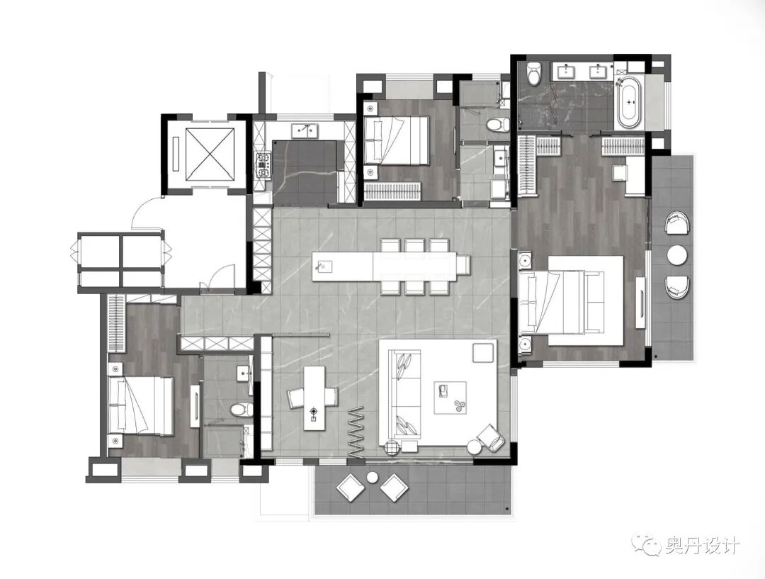 设计是文化行为方式,也是生活行为方式。好的设计是一个知人懂人的过程,需要设计师洞悉居住者的内心世界,勾勒那个足以承载居住者理想与期待的私属空间。本案在设计的过程中,通过设计师不断的站在居住者角度去思考探寻,回归真正的自我表达,创作出那个与居住者行为品格最为匹配的生活艺术世界。
