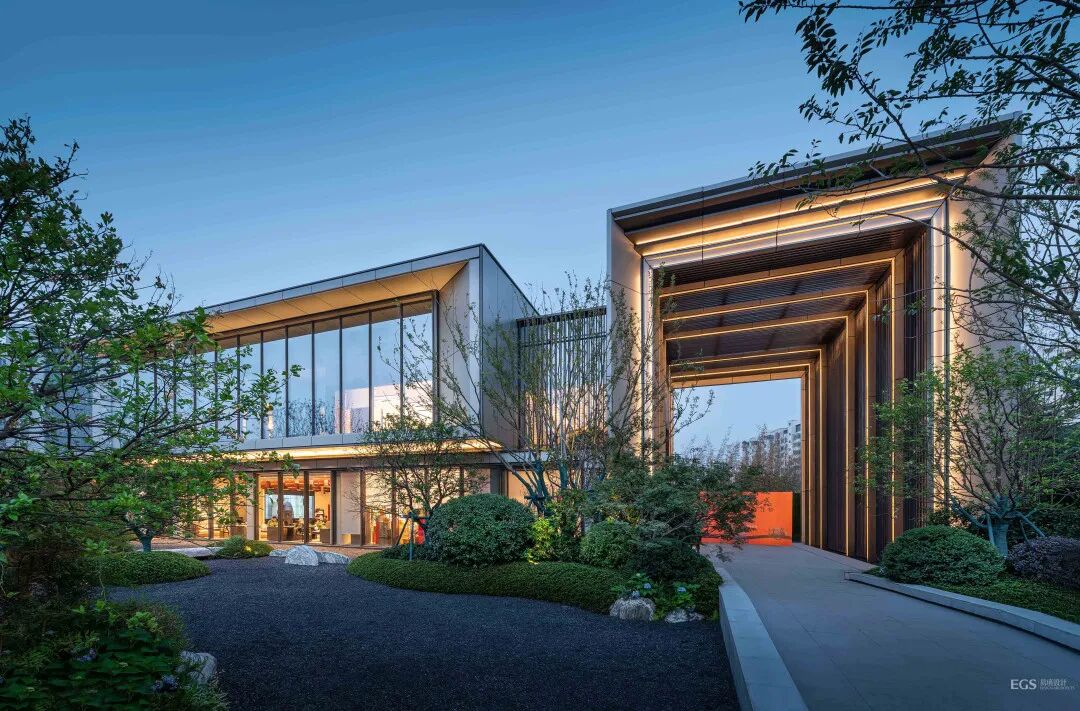 入口处虚实相间的门头结合造型松和景石,如同一幅徐徐展开的画卷。不禁想象画面中门口有一个书生,缓缓推开那门,徐徐走入!