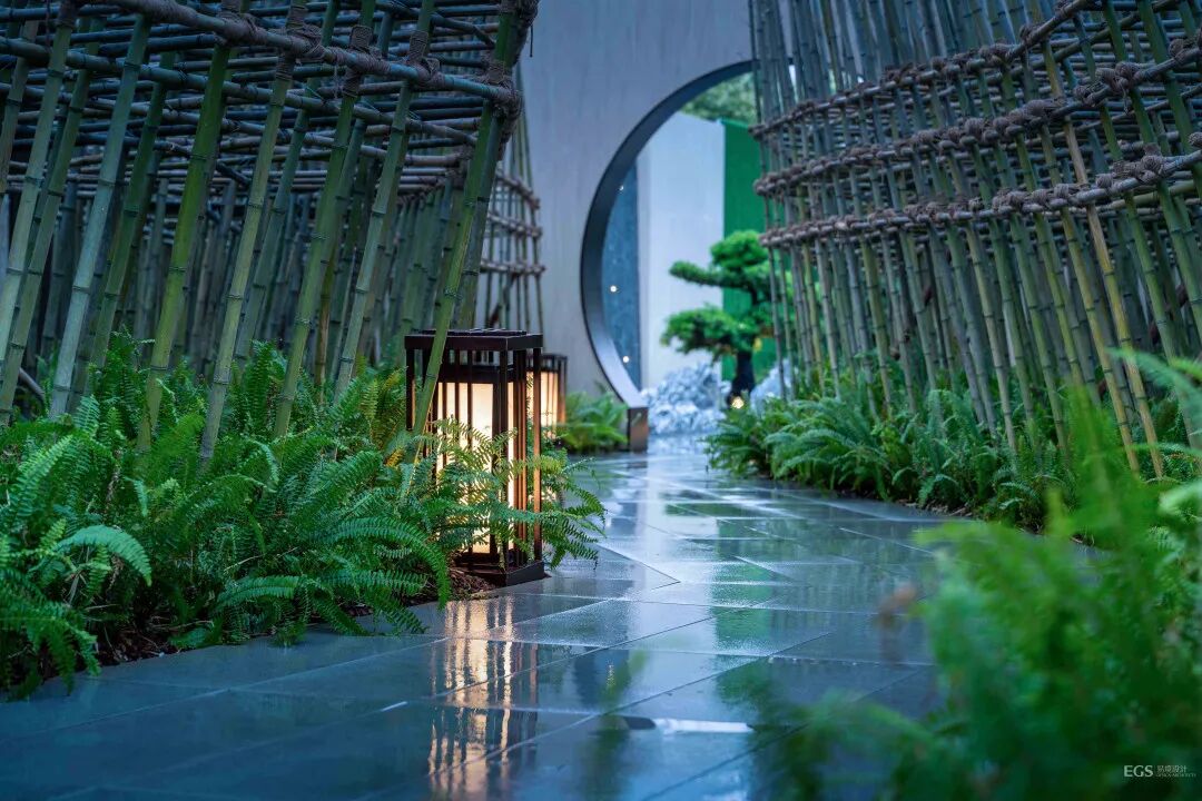 通过曲折的竹林,光影斑驳洒落,安宁美好。