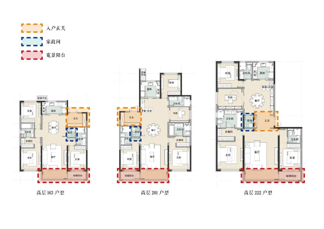 对于沈阳华润瑞府这样顶级居住产品来说,彰显潮流与品味的设计仅仅是基本必要条件,宜人的空间尺度,针对不同场景润物细无声式的考究细节,才真正为高净值人群定义了当代精致生活的高标准。项目中,沿西滨河路布置163,201和222三个主力户型,北侧布置127户型。