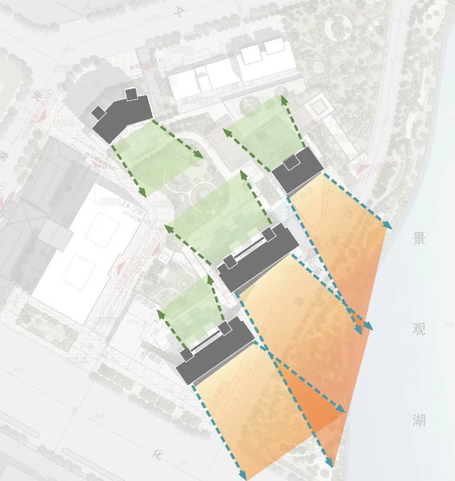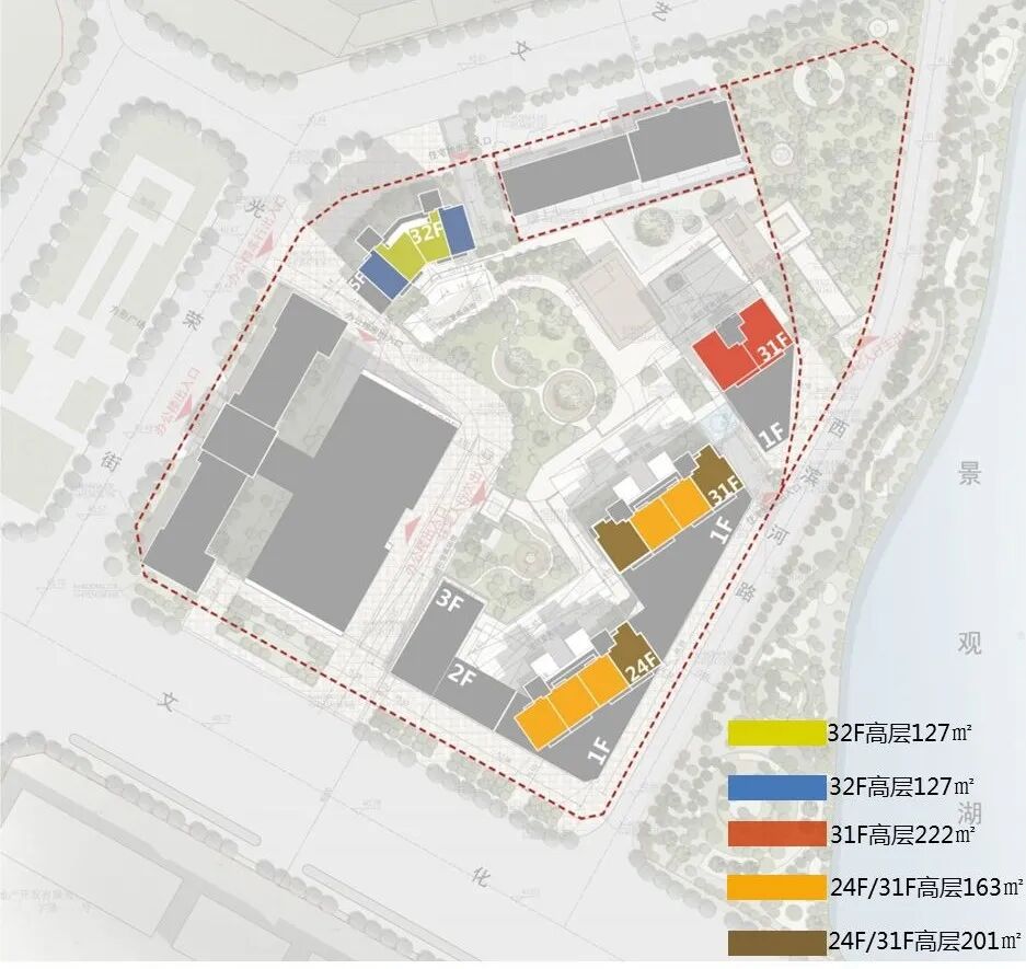对于高净值人群来说,顶级居住产品的“稀有”在于既可以在城市中最繁华处享受生活的便利,又能够在家中享有一份珍贵的静谧感。因此项目通过外围解决机动车交通,对社区内部全景观化处理。沿湖三栋高层几乎实现了“360度无死角”的瞰景视野。