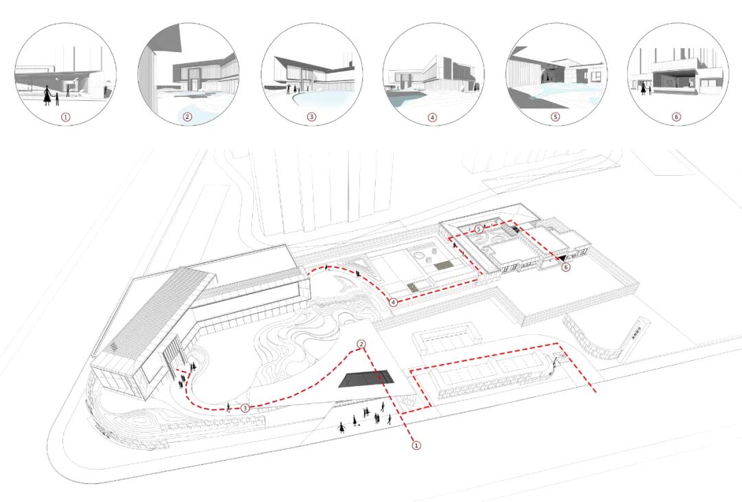 空间成为引导自身体验当中的一部分,是相互联系的,开放的。游览者既能以理性的方式穿过各种捷径达目的地,也可感性的四处游逛,使空间更加积极的参与到其中,成为信息化和艺术化的体现。从而将展示空间扩展到外部广阔的地理空间,突破了传统封闭式的、固定式的空间局限,呈现出开放性、日常性的特点。