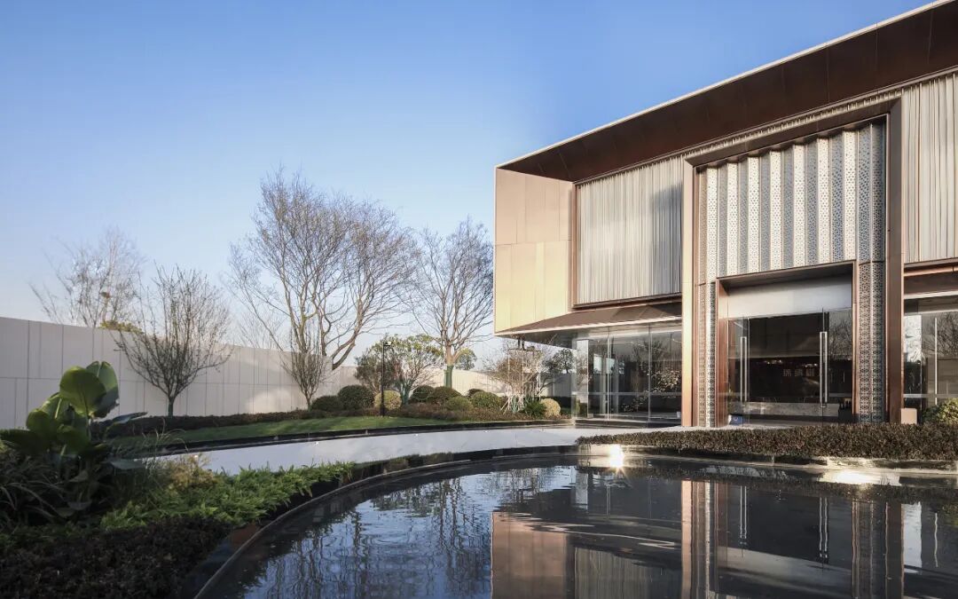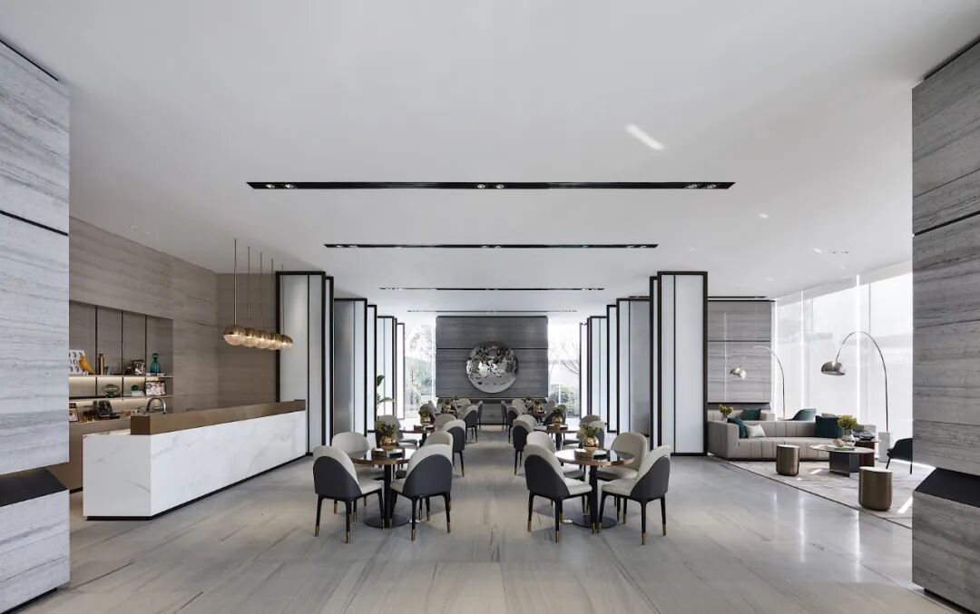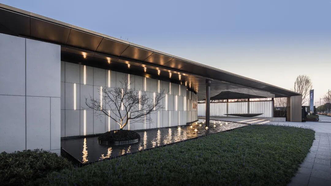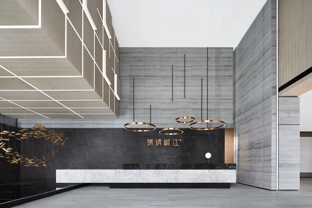 采用内弧形超尺度入口偏置,增加顶部细节添置趣味空间,进一步增强导视性及昭示性,保证视线集中,结合灰空间打造更具仪式感与品质感的入口。