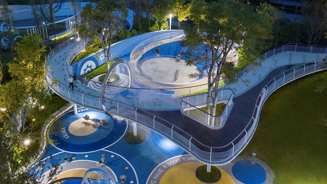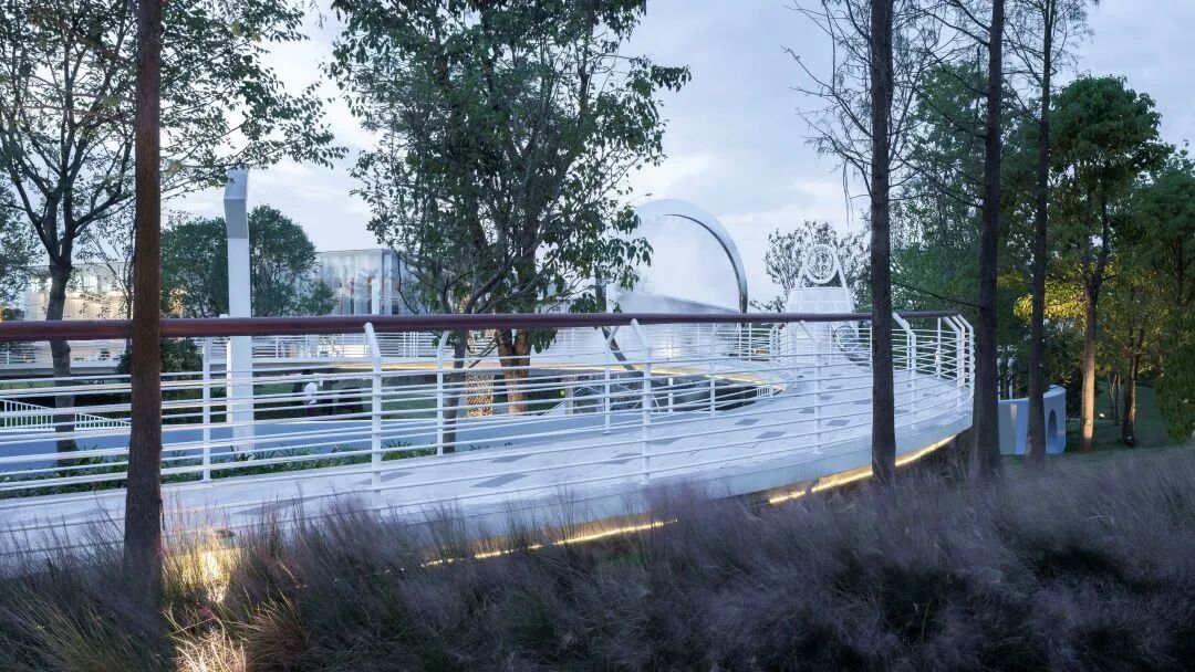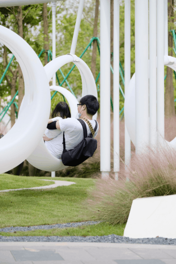 回环秋千不仅延伸了引廊隧道的遐想空间,还赋予了景观以时光的记忆,让人们在此邂逅童年。