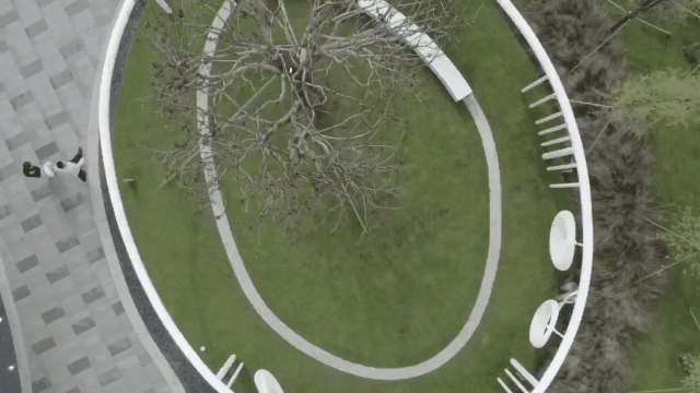 The circular swing at the end of the winding path is not only the conclusion of the corridor tunnel, but also the introduction to the birth of vitality. The design incorporates a swing that enables people to participate and interact improvisedly, redrawing the peace and laughter of life in the language of landscape.