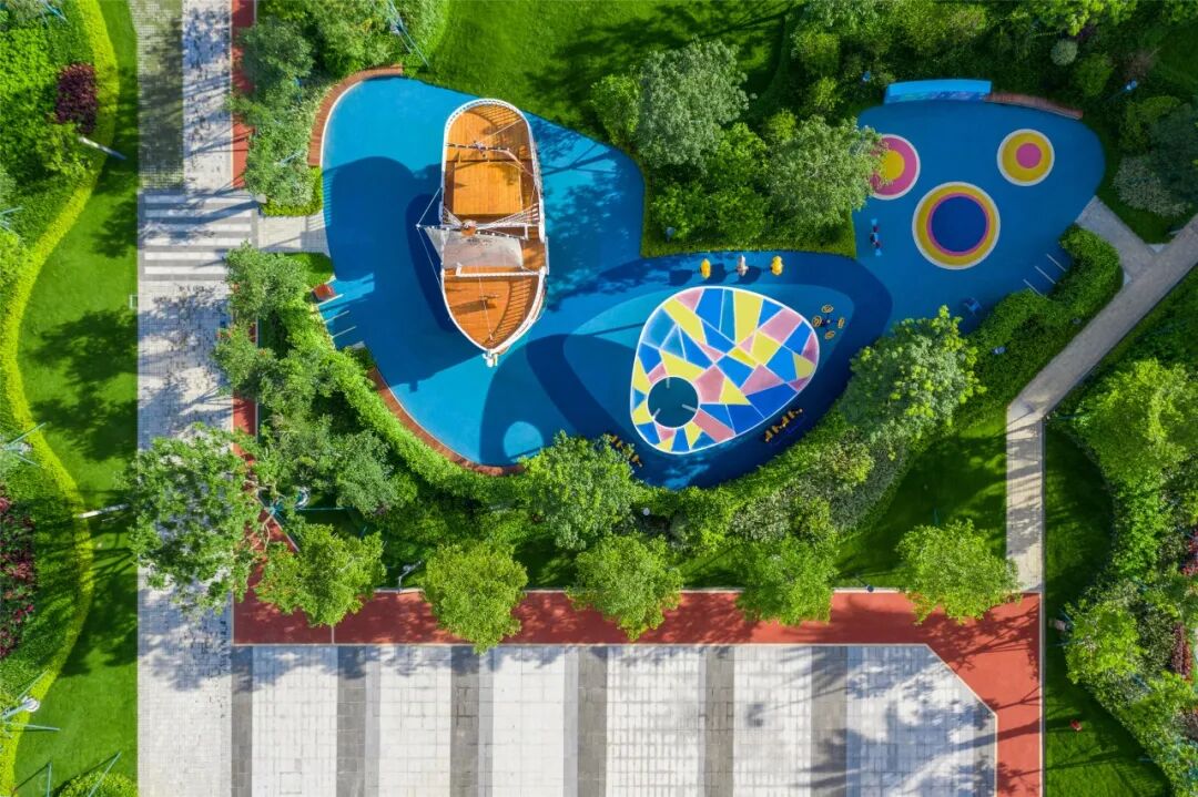 设计顺应儿童天性,充分结合场地,运用高饱和度色彩的组合碰撞与帆船造型的游玩设施,建造专属儿童活动空间,满足不同年龄段儿童的游乐需求,引导孩子们用独特的眼光去发现世界,为孩子打造一个家门口的童年梦幻乐园。