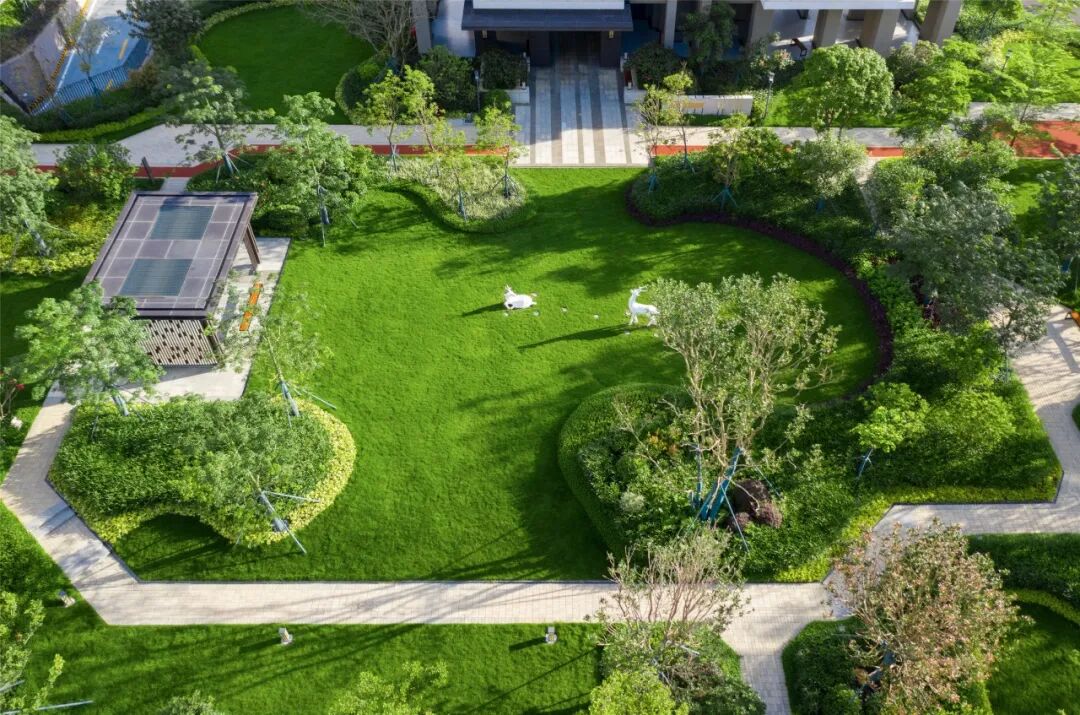 为了让户外空间更加饱满,改善业主户外活动的丰富性,铺设大面积阳光草坪,为居者提供与阳光亲密接触的开敞空间。