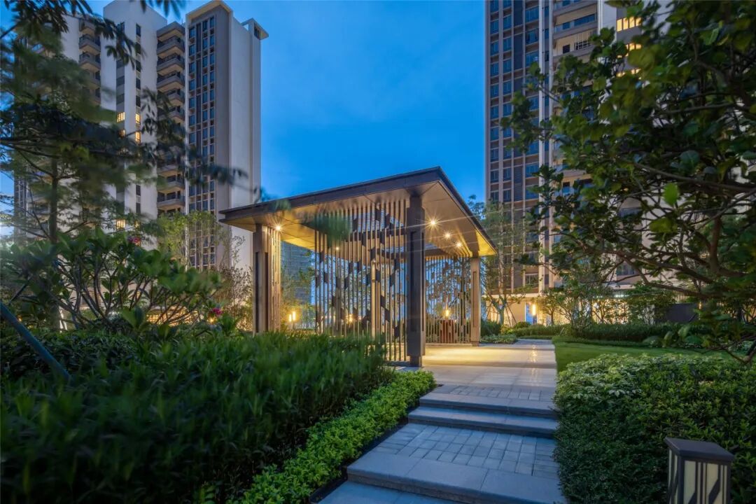 当园林景观与社区功能相融成长,景观便成了居者生活半径的延伸。项目将自然景观与园境艺术相结合,借鉴海浪造型元素打造独具特色会客厅立面,构筑滨海生活美学。