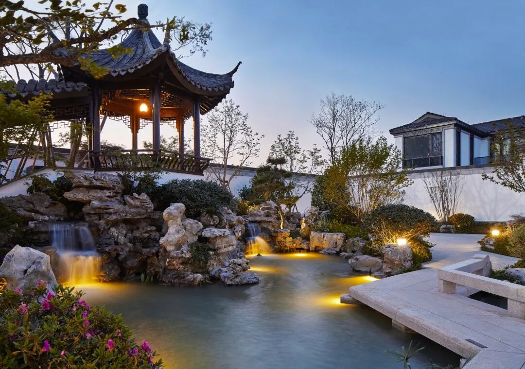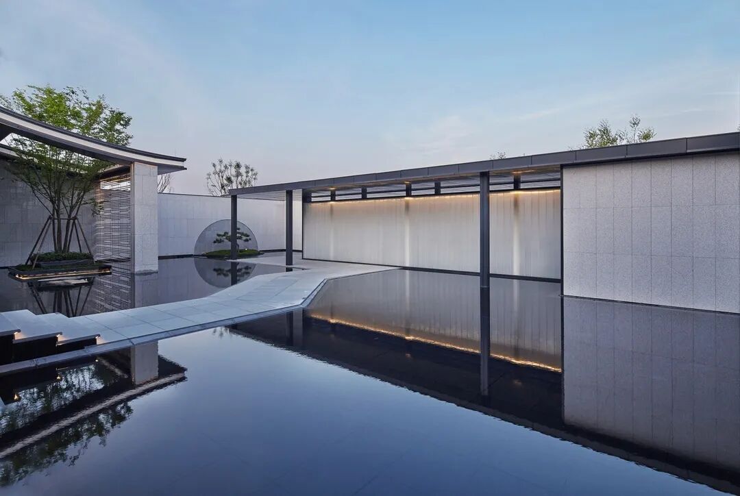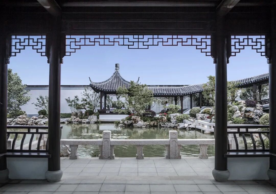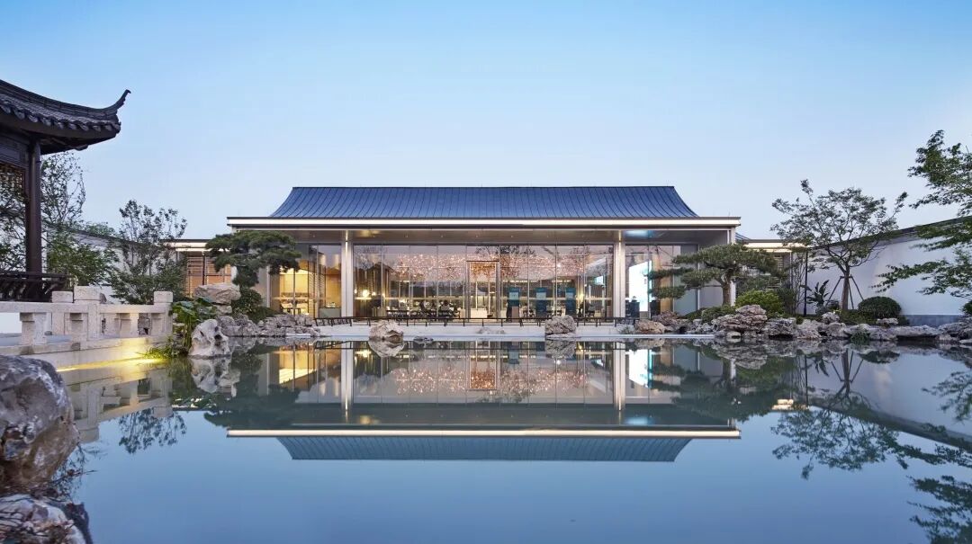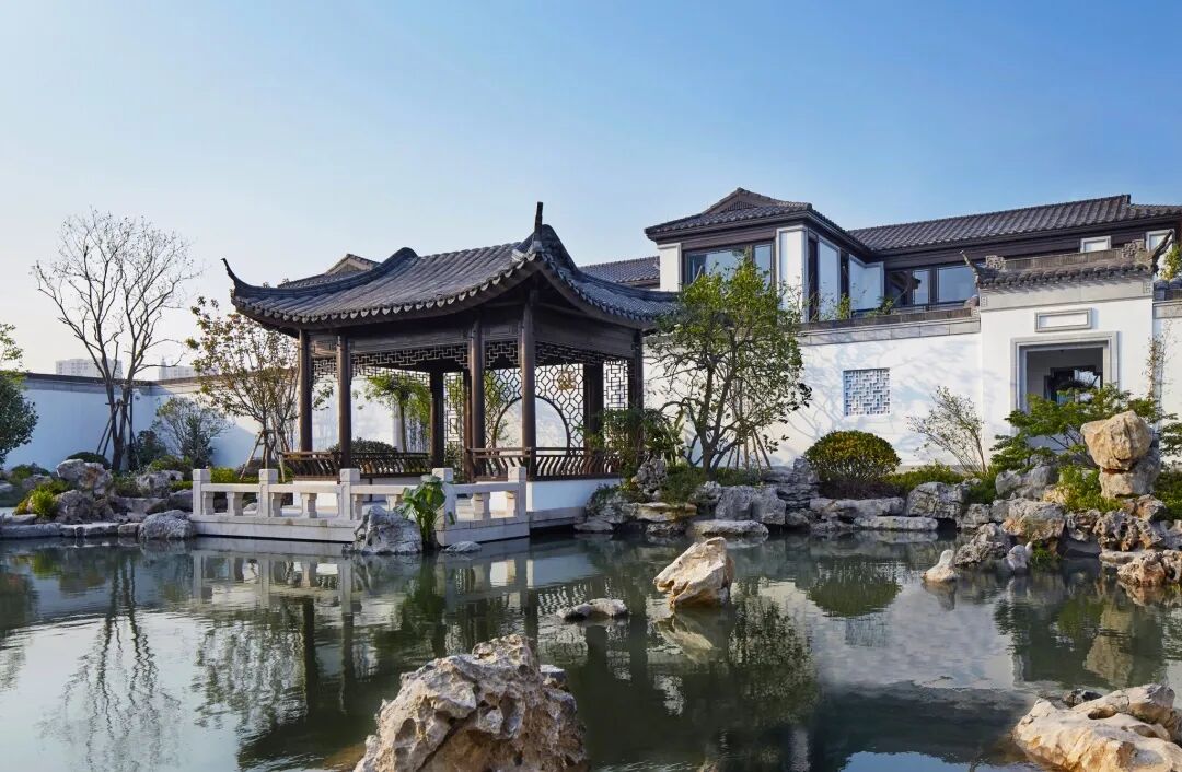 融信中能·海月清风美学馆伫立于三进庭院的依水平台,现代庭院与古典园林对空间的边界自然衔接,集经典手法于一体的苏式园林宛如画卷展开。于都市繁华中还原江南园林的趣味,倚水而歇,凭栏而望,可坐可憩,可赏可玩,山水间寻求诗意的生活状态。
