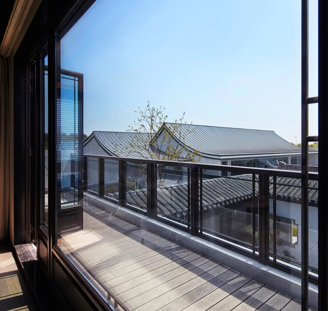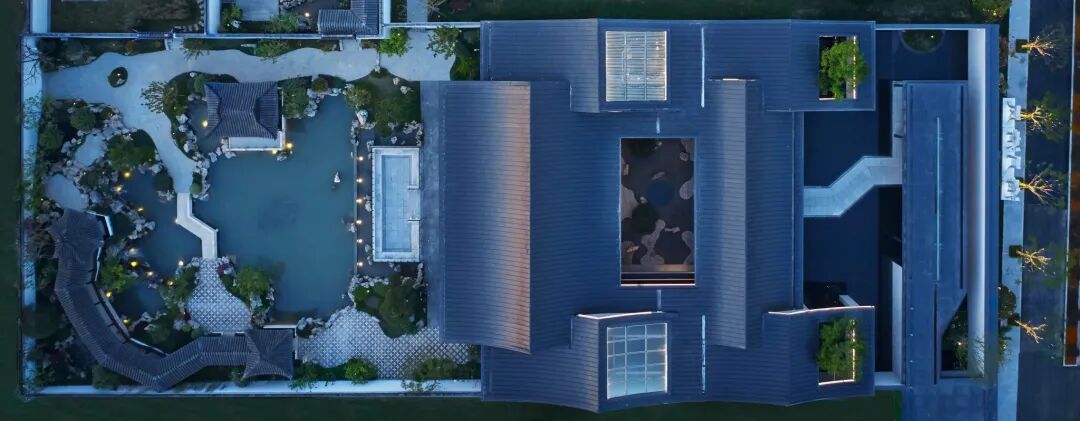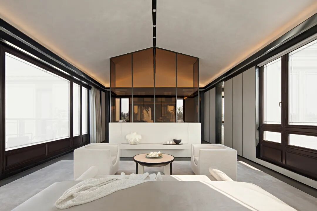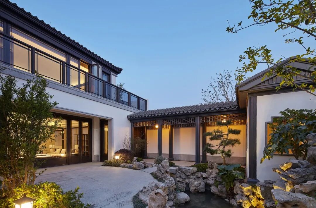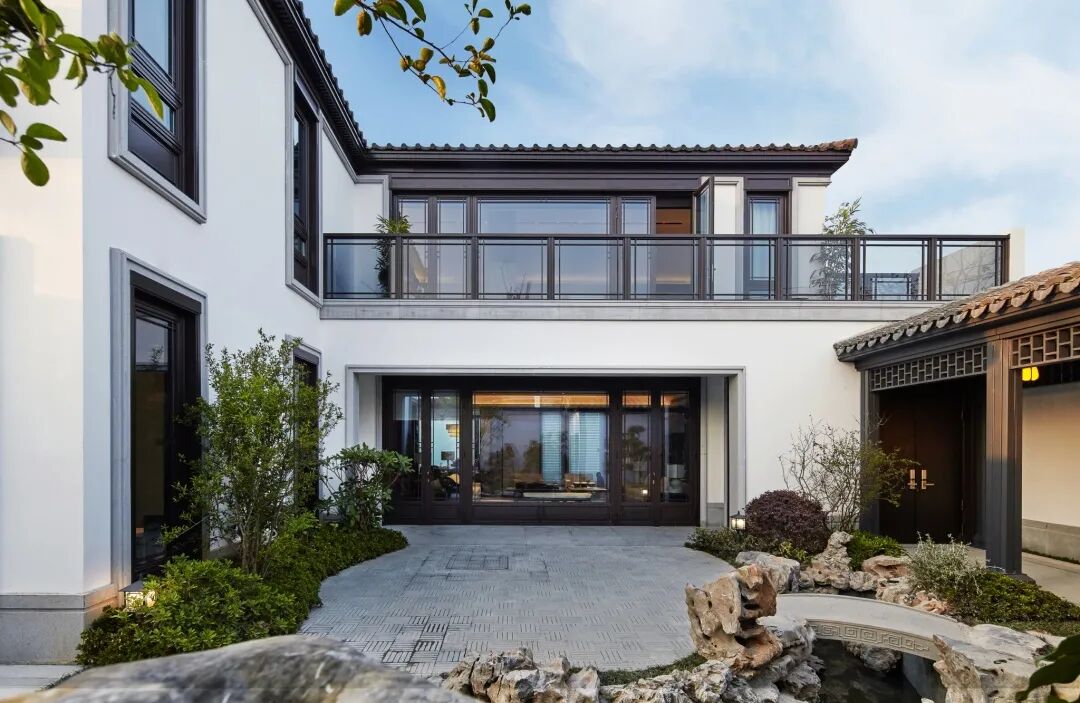 设计中弱化传统合院的古典、形制以及装饰上的中式,以“意象中式”的手法,写意江南的温柔,同时,在空间中大面留白,创造 “返璞归真”的极简自然之韵。
