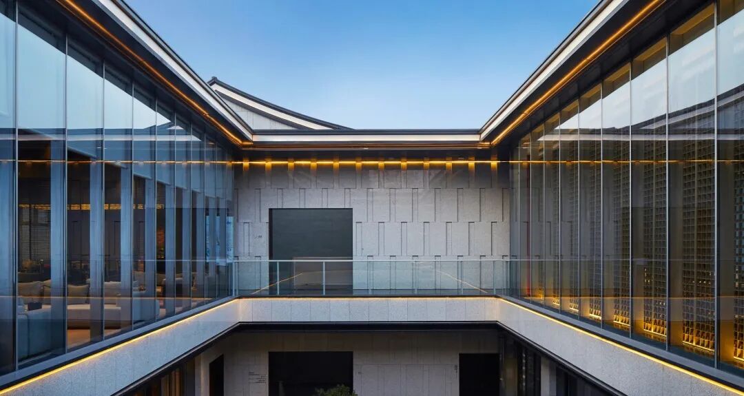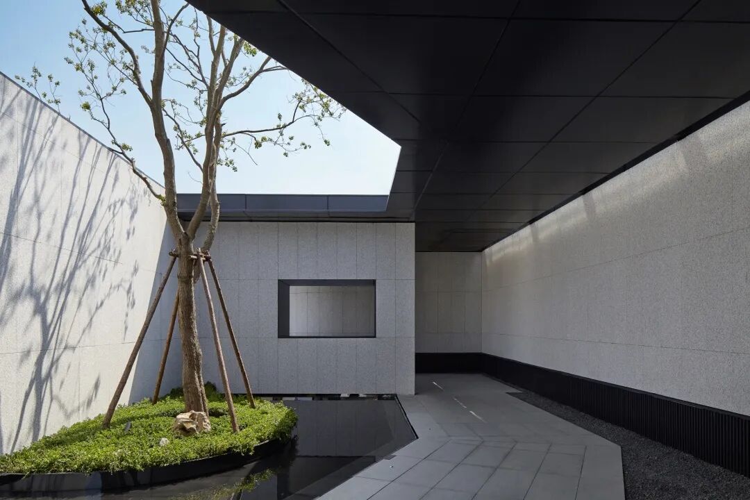 沿着朦胧明净的廊径缓缓前行,曲折幽趣,明暗转换中一抬眼,一进庭院豁然开朗。