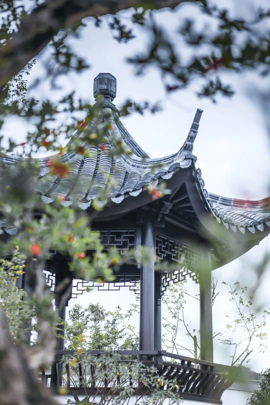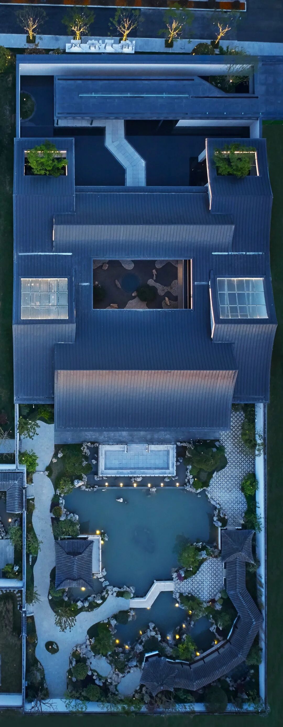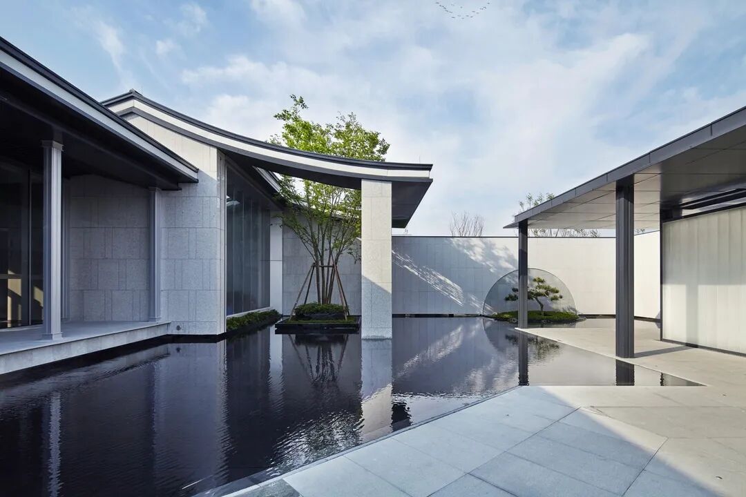 将现代设计手法注入建筑回廊和下沉式二进庭院,满足实用功能之余,更形成空间叠加的丰富层次,雅致有趣。穿过开敞通透的售展大厅,伫立于三进庭院的依水平台,现代庭院与古典园林对空间的边界自然衔接,集经典手法于一体的苏式园林宛如画卷展开。
