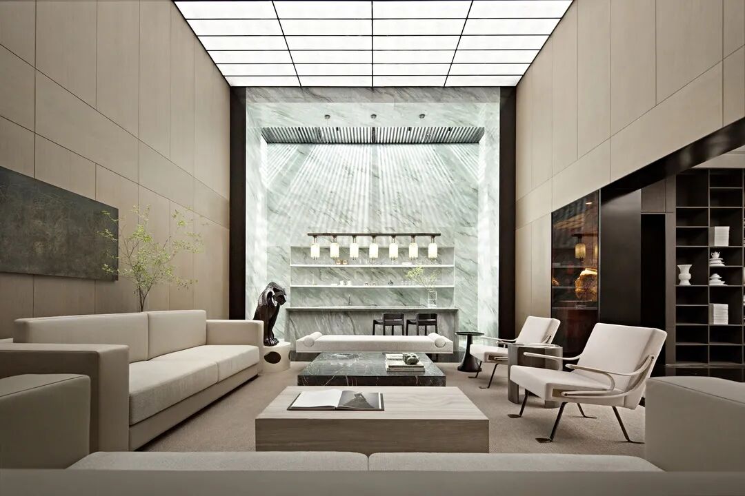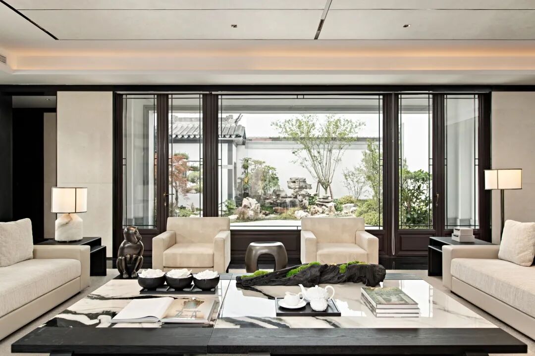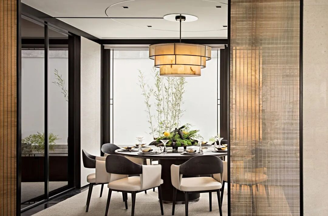 整体空间明朗开阔,布局上传承着东方的中正、陈列式齐整布局,但关系均为开放式,既传承千年礼序,又加以自由灵动的姿态,描述现代大宅的生活典范。