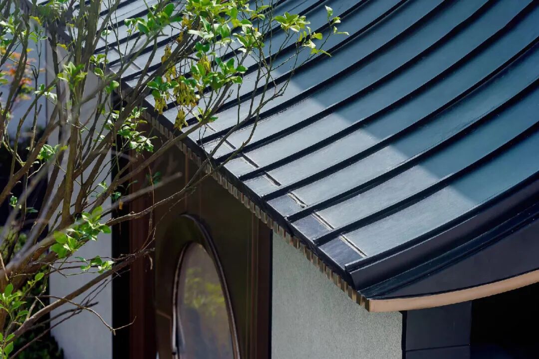 为体现吴冠中笔下屋顶的“薄”,设计以传统经典结合现代简约的叙说形式,弃黛瓦而转用金属板,将墨画蕴意、水乡淡雅,演绎的更传神。相比于传统瓦屋面工艺,金属板系统屋面更具防水保温性能。