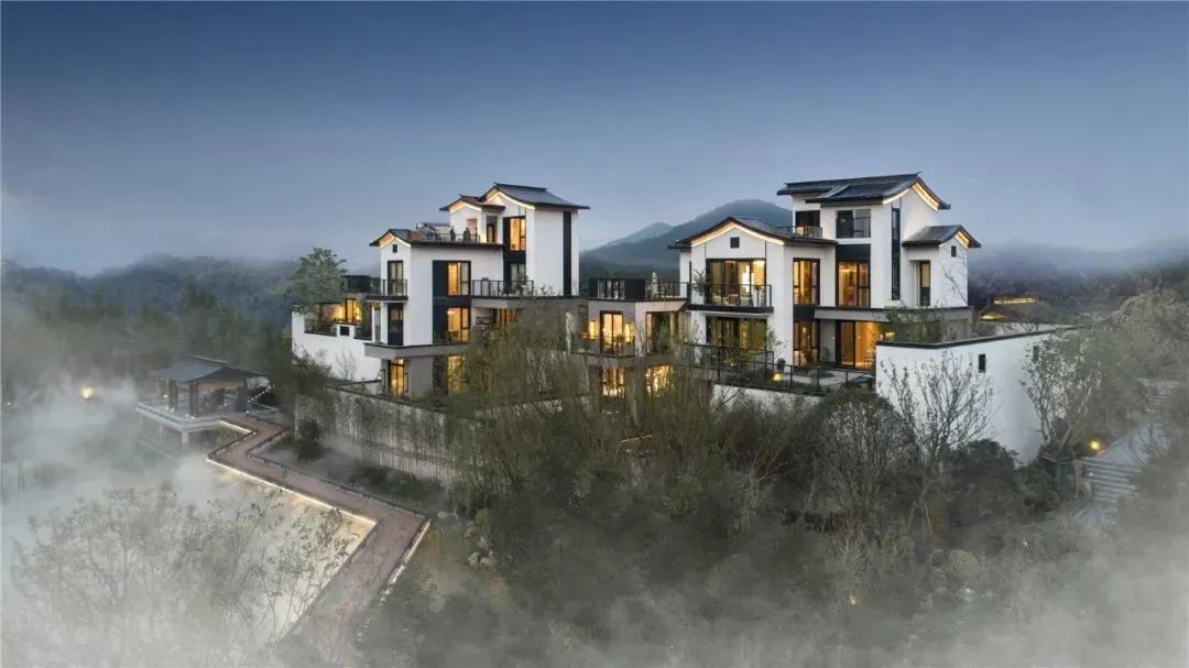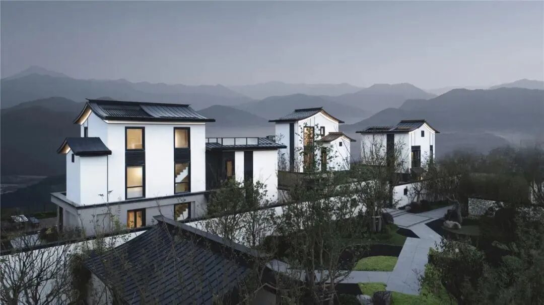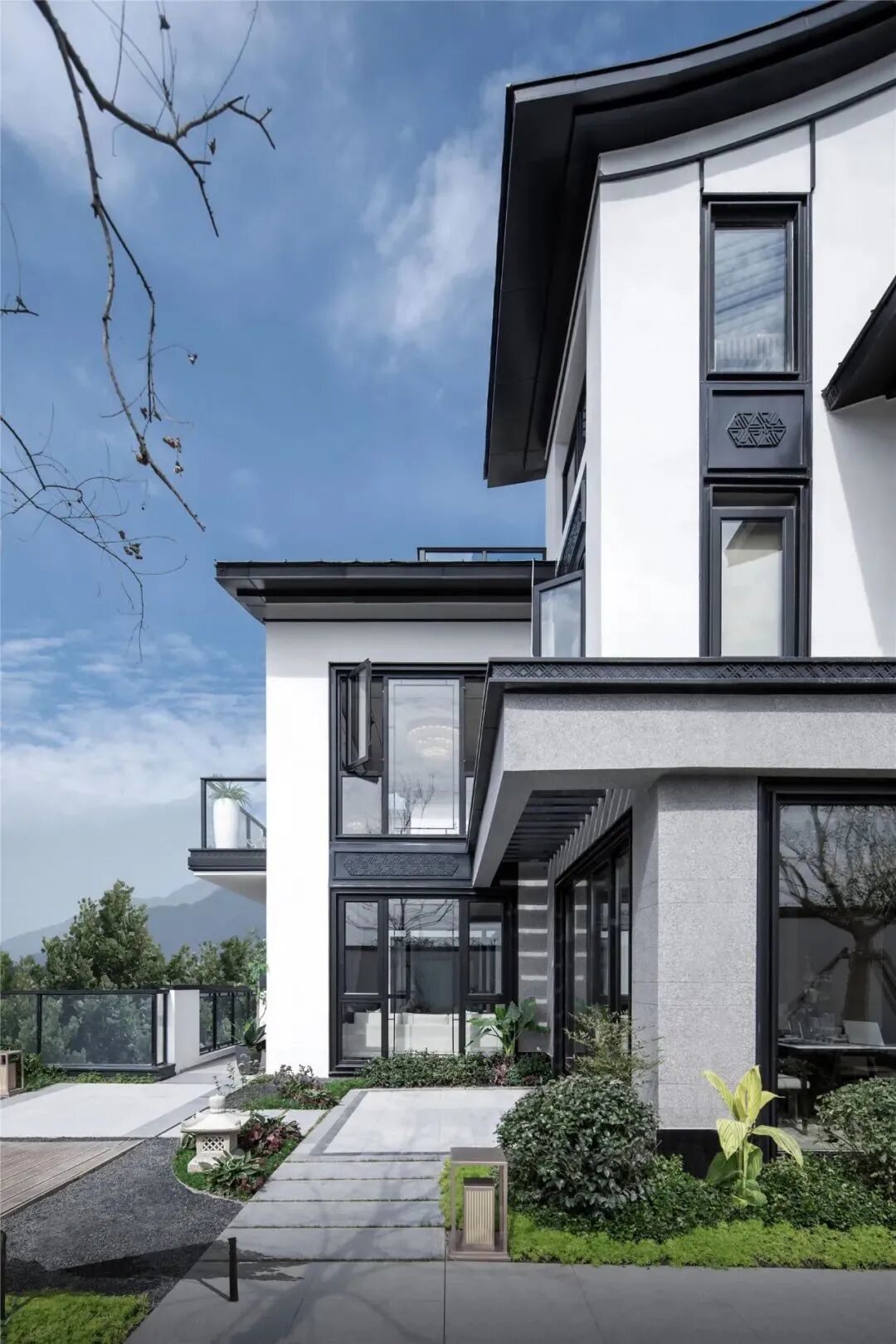 人们对于建筑美的感知往往是从外立面开始的,外立面是建筑个性和建筑风格的重要体现。国风大境外立面以铝板、肌理漆、仿石漆等材质打造轻中式风格。雪白的墙壁,青黑的瓦,黑白灰的色彩搭配,天然地势的加持,形成错落有致的建筑形态,颇具美感。