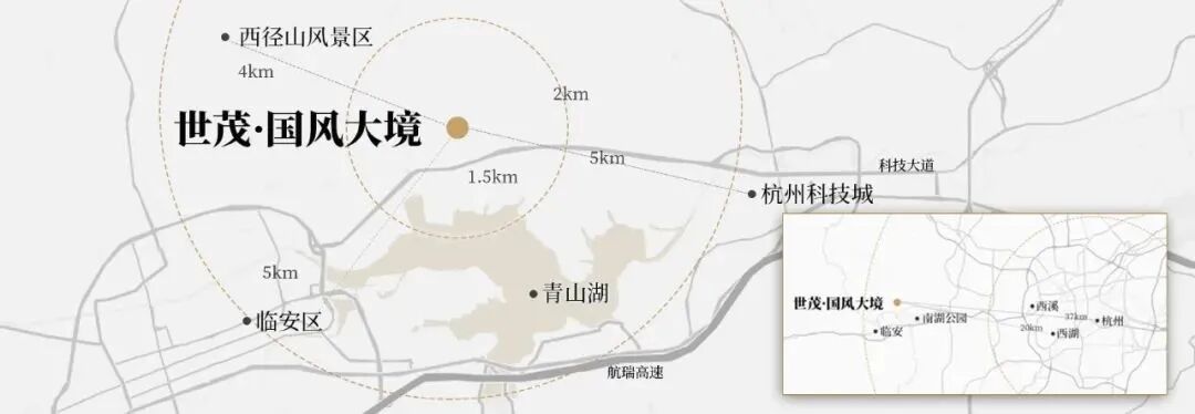项目背靠桃园里山,南拥青山湖水,突破了山水与城市的壁垒,近享约10平方公里浩渺烟波,毗邻轨交16号线,周边荟萃教育、健身、商业等城市资源,秀美的湖光山色和理想的人居图景在此铺延。