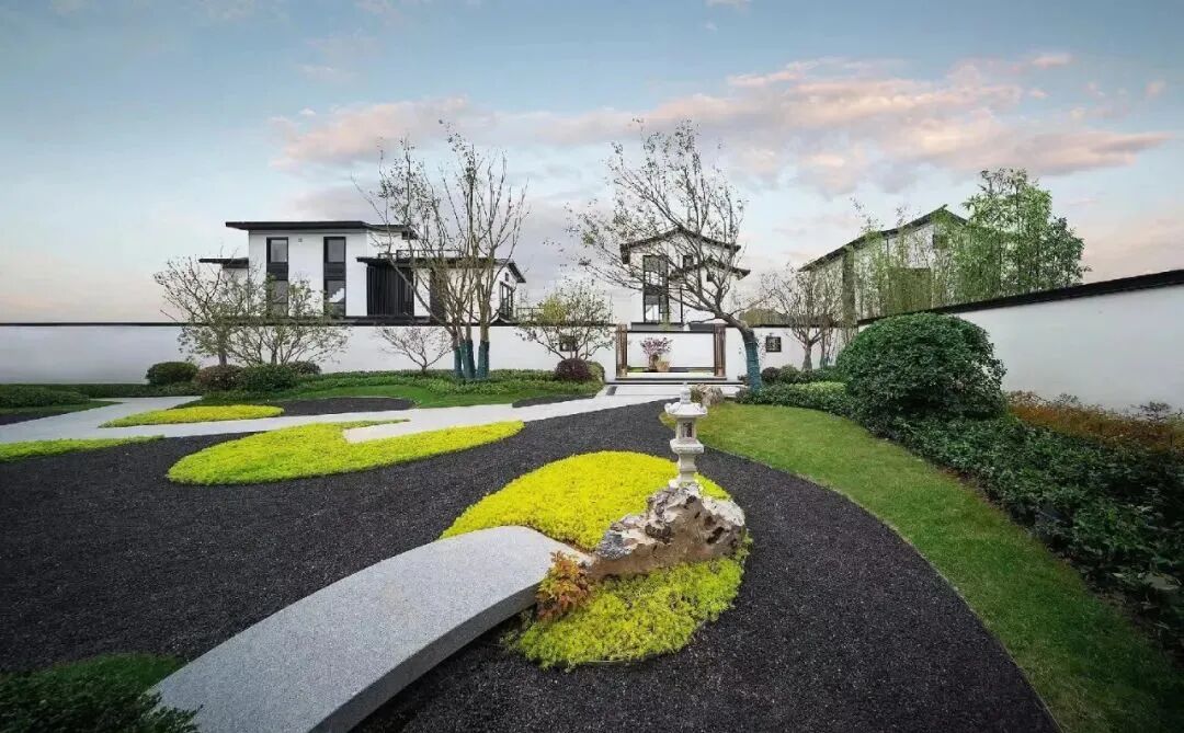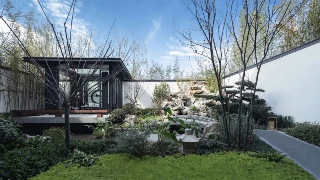 枯山水、绿植创造的禅意空间,点缀干净清爽的种植,静谧的空间氛围被烘托得恰到好处。巷陌交错间,偶遇睦邻,相约树下对弈、品茶赏画,交谈往来之间,尽显风雅。