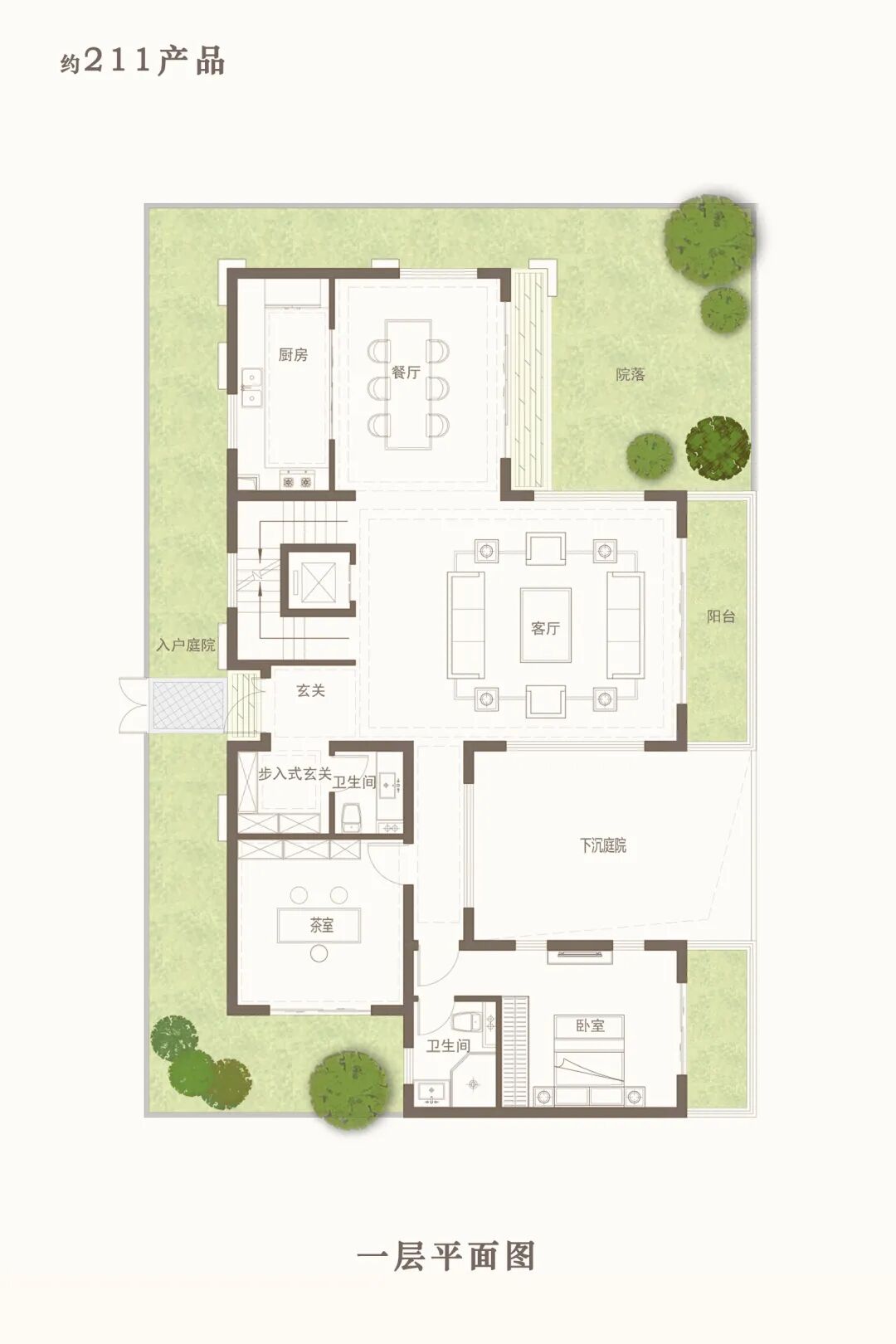 围合式庭院布局,推窗见景;客厅和花园无缝对接,悠然舒适 奢适四房设计,满足家庭不同需求;入户院落搭配玄关设计,升华归家礼仪。