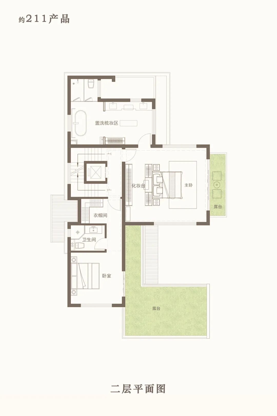 为数不多的建面约211㎡户型多分布于湖泊旁,环抱最得天独厚的景观资源;院中有墅,墅中有院;四房三厅六卫的配比,均衡照顾全家起居。