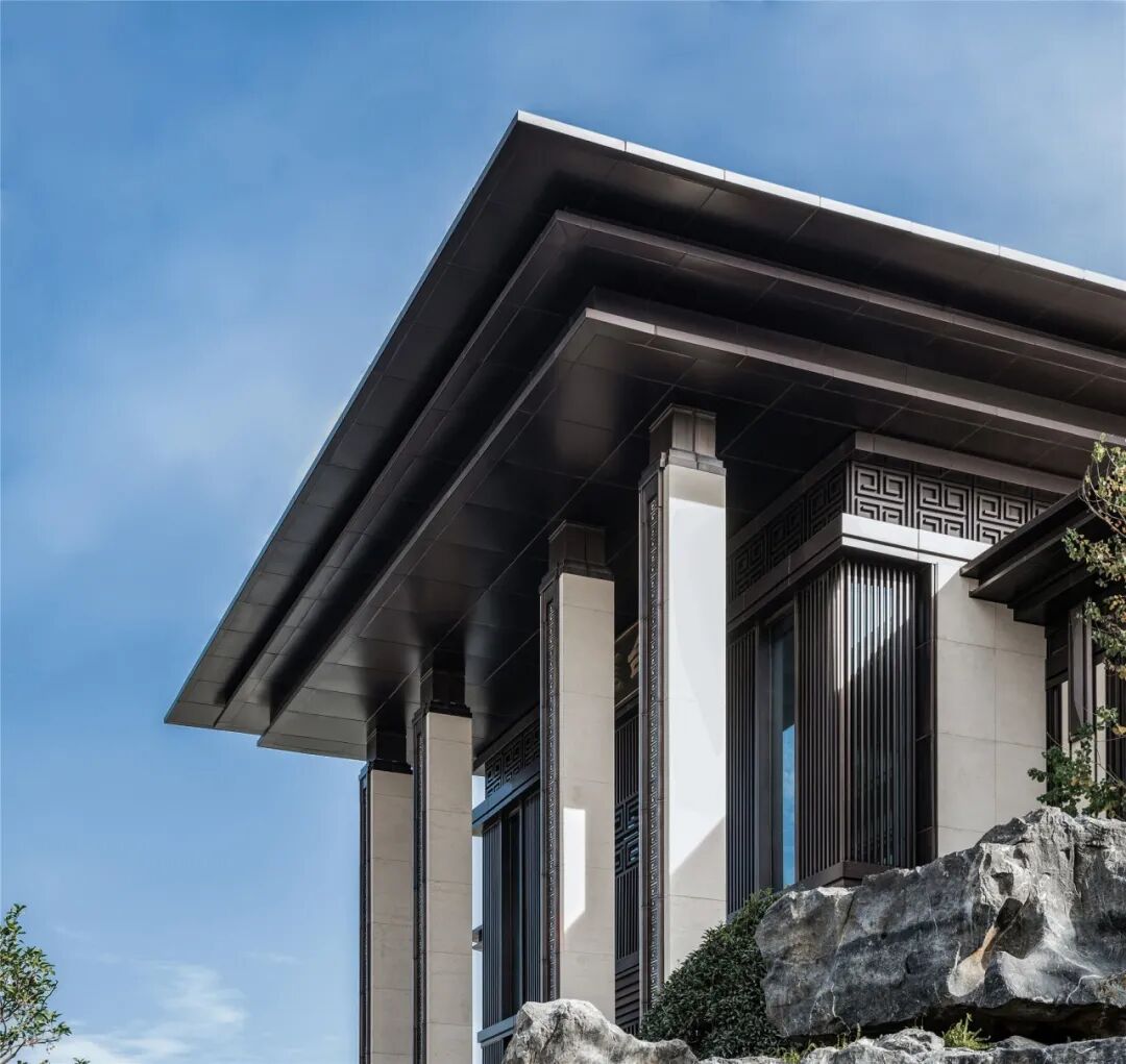 云玺台读懂这份期盼,秉承“传承与再造”的核心理念,提取中式经典建筑元素回纹、花窗、飞檐进行再加工,以现代设计手法,通过各式纹样的运用,古典元素与现代材质的古今碰撞与虚实结合,丰盈德化人精神层面居住需求的同时,亦形成具有自身特色的新中式建筑风格。