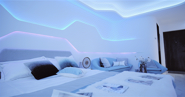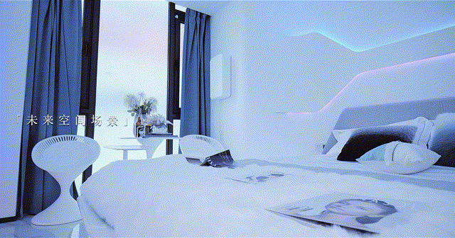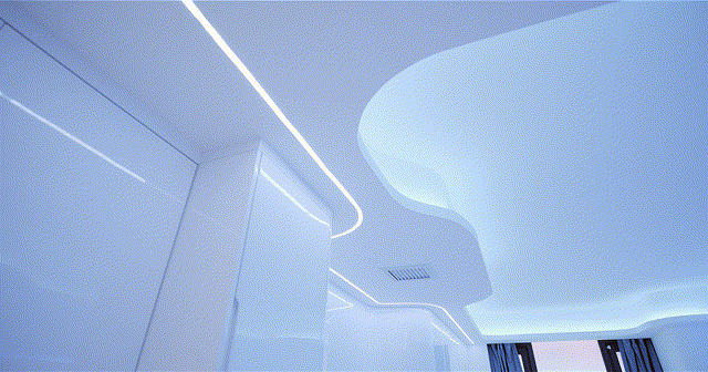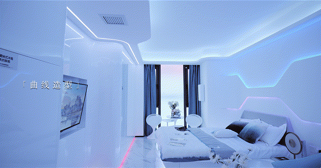 光是俏皮的“空间精灵”;蜿蜒曲折的流动灯光与高光白色烤漆墙面,构筑了一个多角度的漫反射环境,充满未来感的浪漫气氛孕育而生。