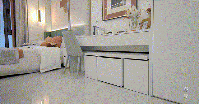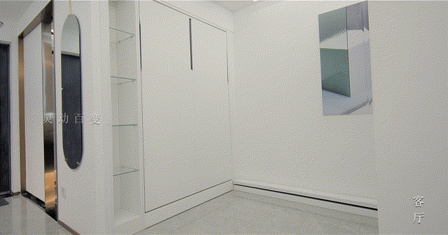 通过移动电视柜,旋转电视,翻折床,多变桌椅,智能体系实现 2房2厅1厨1卫1衣帽间的强大功能。