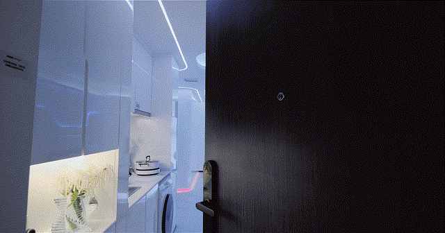 The powerful functions of 2 bedrooms, 2 halls, 1 kitchen, 1 bathroom and 1 cloakroom are realized through the mobile TV cabinet, rotating TV, folding bed, changeable tables and chairs, and intelligent system.