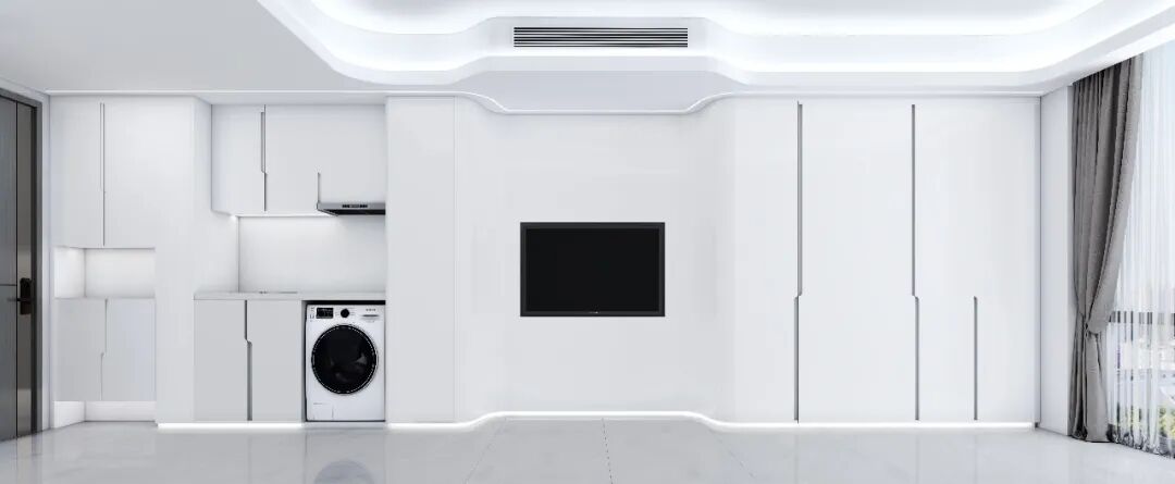 Cool science fiction, minimalist future, create an intelligent system for the whole house, and enjoy convenient life; curved cabinets and curved shapes release the sense of advanced space!
