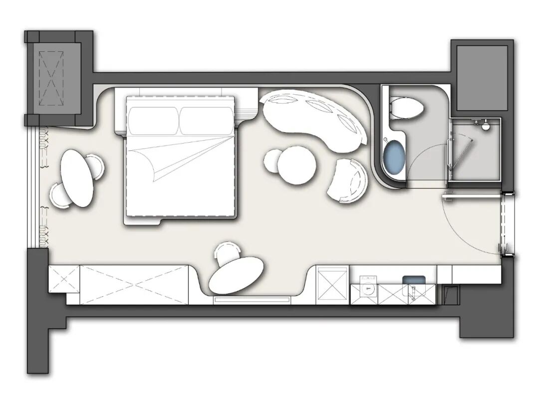 本案以“未来”为设计主题,一居室的开敞空间,是雅痞的天马行空和自由反叛。