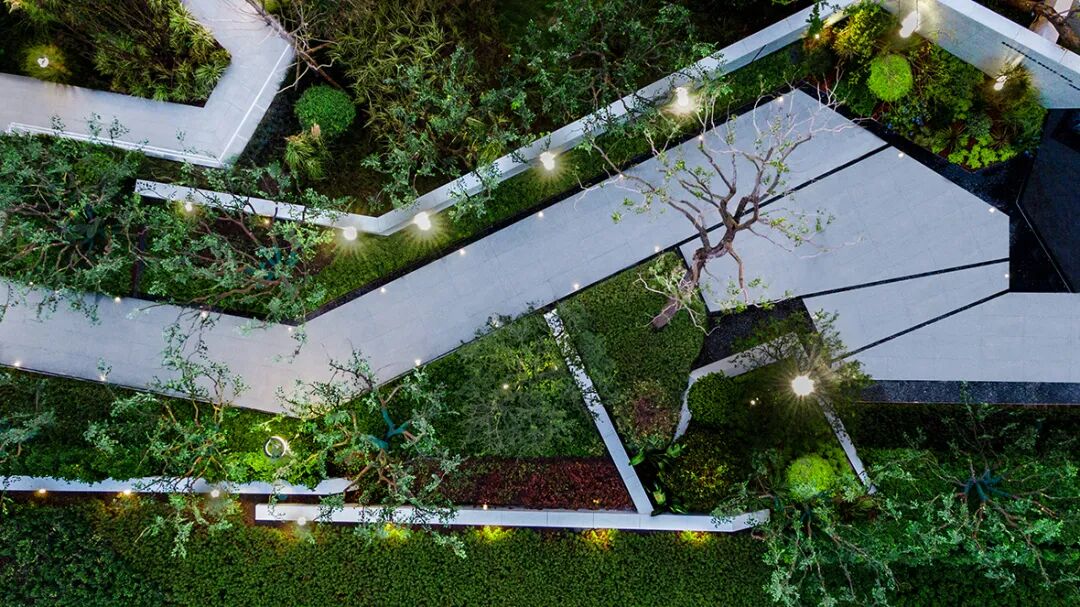 以串联的林下曲径为主线,采用极具张力的线性、穿插的手法构成场地独特的底蕴,营造出“初见、渐入、沉浸、寻觅、潆洄”多重空间体验爆点,情绪空间的变化让心境跌宕起伏,富有趣味;软景以干净的密林为主导,于光影斑驳里,聆听虫鸟啾鸣,感受微风拂面的清爽,对自然生活的期盼油然而生。