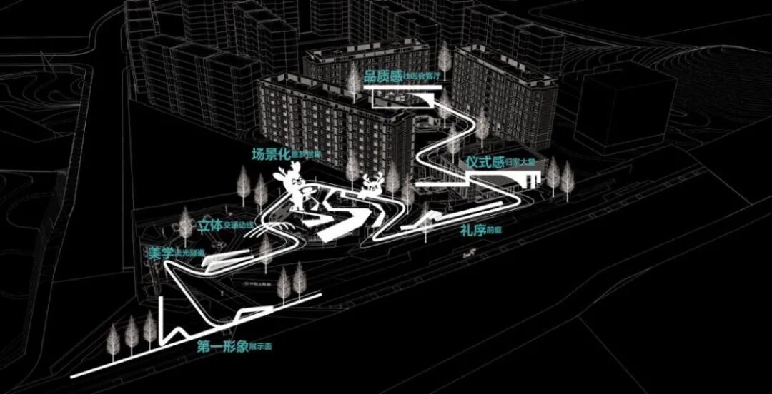 我们对复杂多样的场地进行整合,挖掘其优势,从项目气质、设计元素、设计手法进行引领,瞻见未来生活。