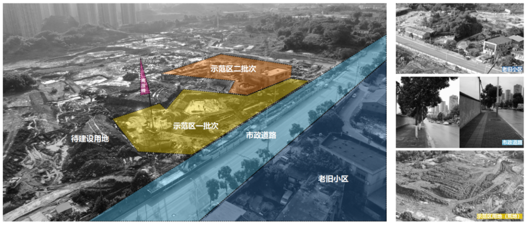 示范区城市沿街界面较长且现状较差,如何处理市政关系、利用现状地形走势匠心造景,在注重景观性的同时关注功能性,成为设计面临的一大挑战。
