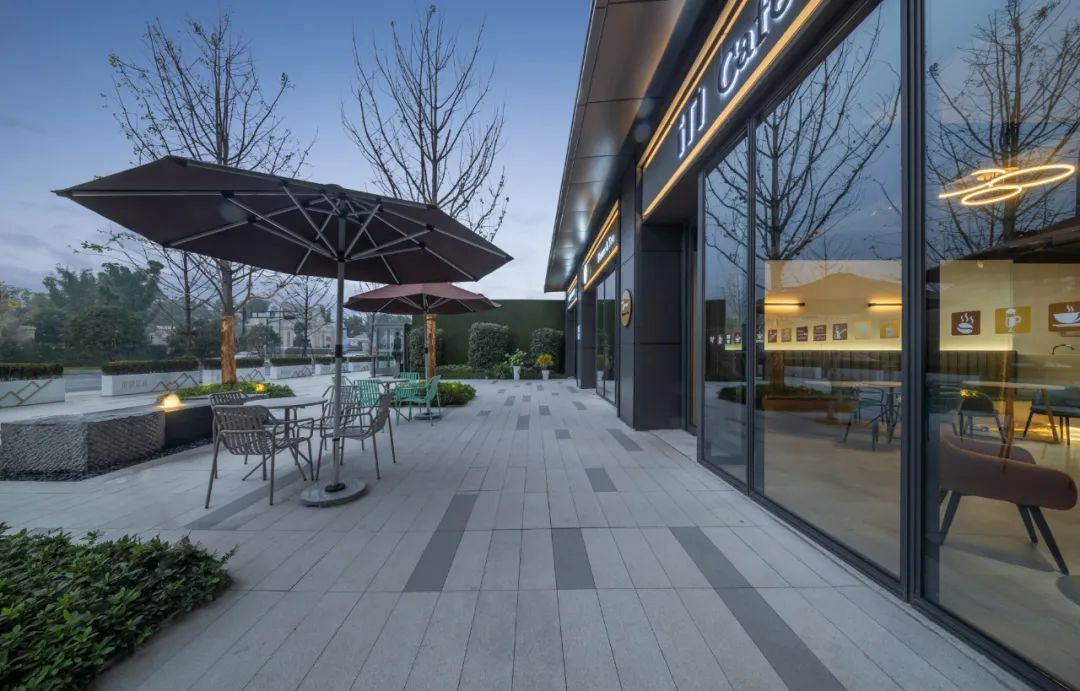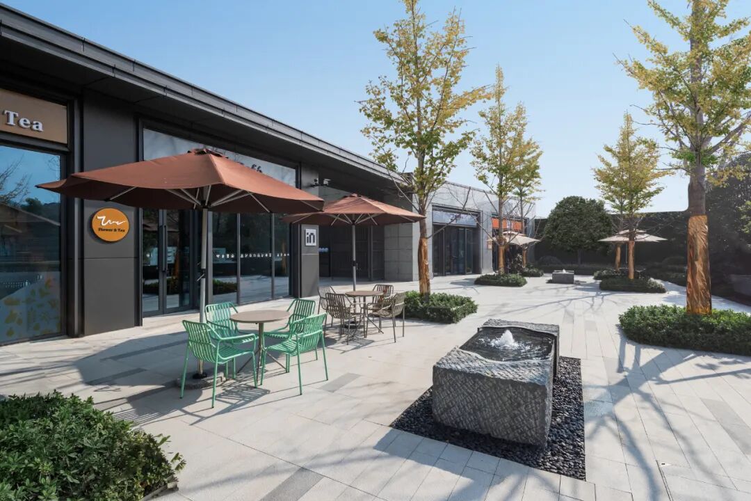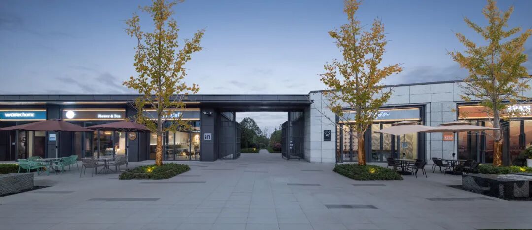 入口迎宾广场是未来商业街的一部分,设计师通过巧妙的植物配搭和商业化的盆景围合营造独立、尊贵的迎宾气氛,结合特色水景及户外休闲座椅,未来的商业场景近在眼前。