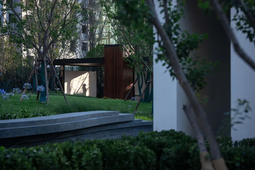 转过景墙,一个具有“艺术视野”的橱窗映入眼帘,人在行进过程中层层递进的视线聚焦于艺术橱窗,这种内部极致的秩序感,让尊贵的气质更加突出。