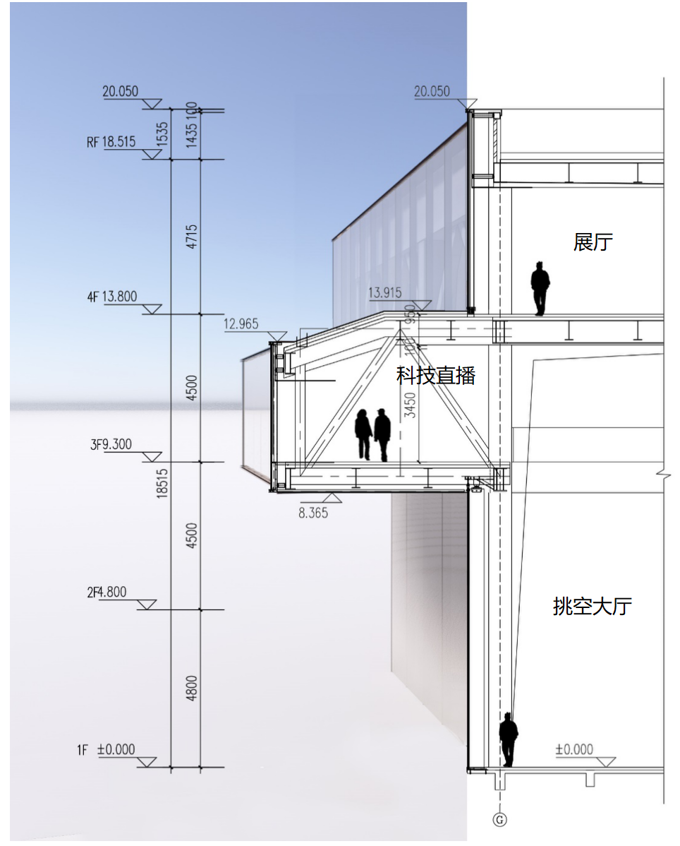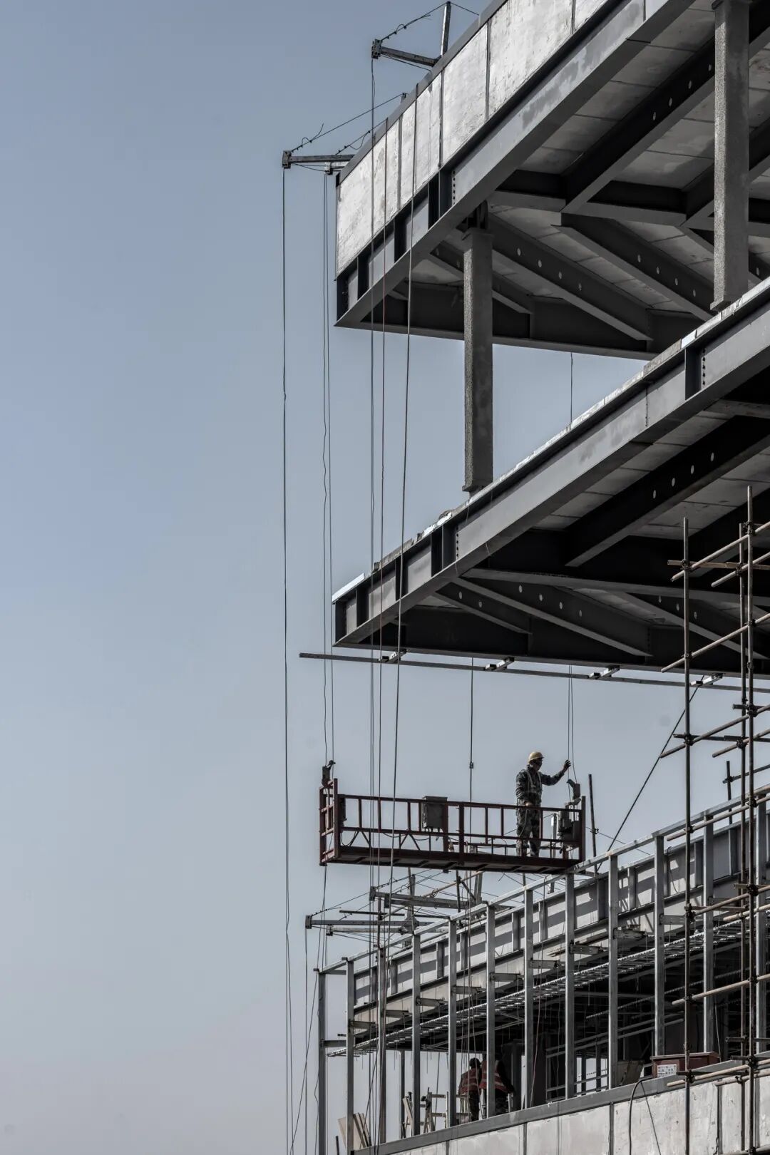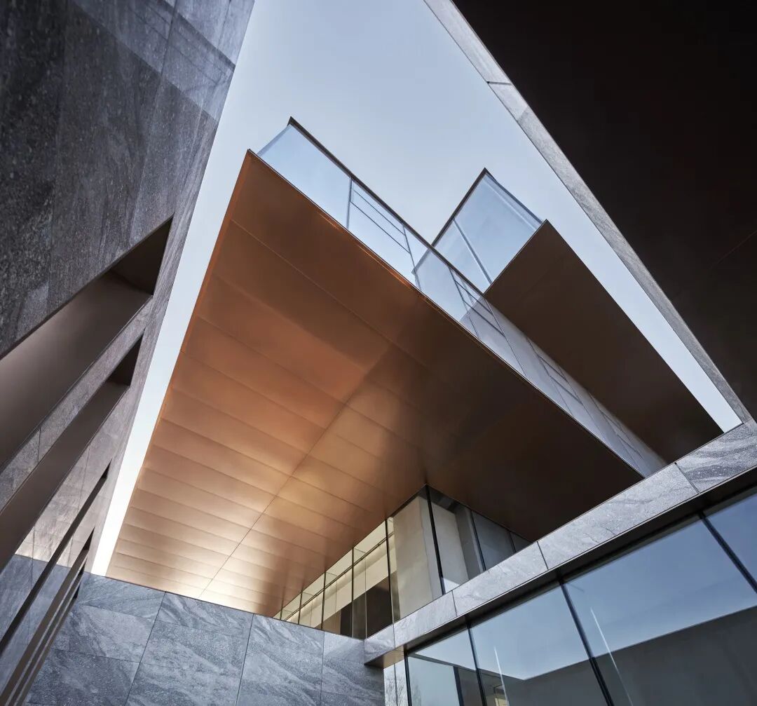 结合项目体量通过层叠和咬合错动,呈现出具有震撼力视觉感的空中楼阁,形成了面向主要街道的大悬挑,以超尺度的空间架构营造出极富辨识度的城市坐标。