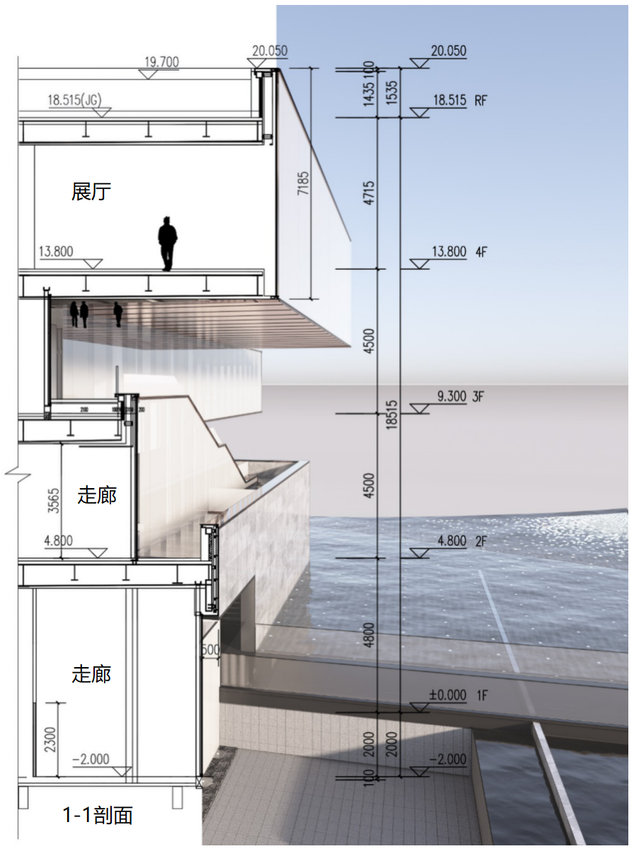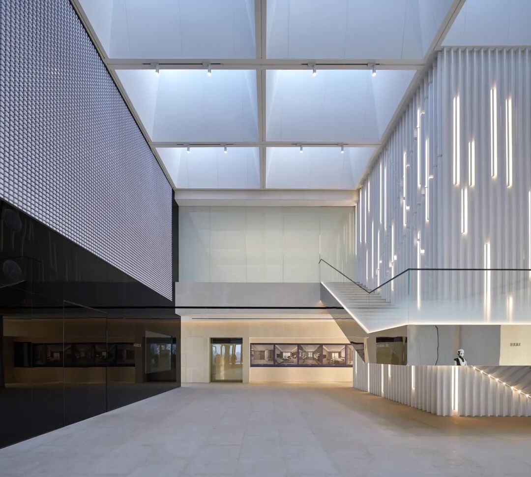 层层退台而成的空间场域,形成“地平线”般的纵深感,传达了艺术空间的生命力,提升了设计品质与维度。