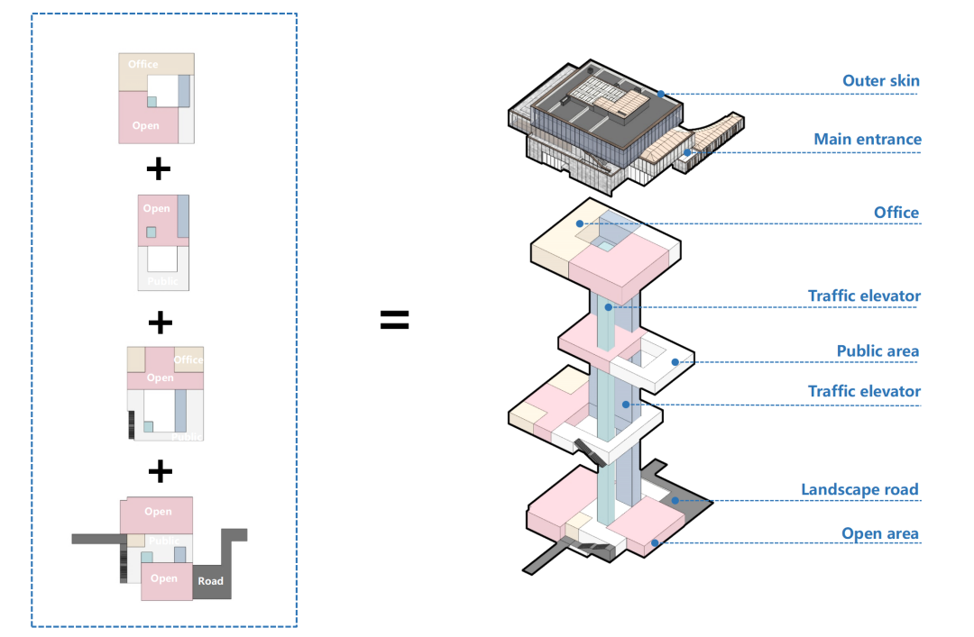 那么,当他日成果显示,我们又该如何实现产城共享?以具有公共性与人文形象介入的城市展厅,或许是破局的一种思路。于是,金地携手融创,以首府科创城之名开启了城市新旧的融合与蓄力,作为建筑设计方,我们着力于挖掘城市片区价值,以有序建构的语言复兴地域空间的活力…...