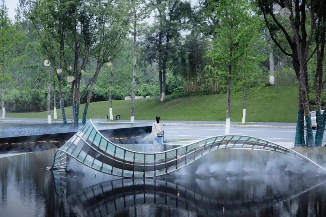 ▼无论是建筑如折扇般的玻璃幕墙、水景中映射出丰富变化的光影,亦或是指引性的跳色灯带铺装,都将整个空间布置的如同舞台一般亮相于此,在这座城市中为即将到来的天府中央商务区拉开帷幕。