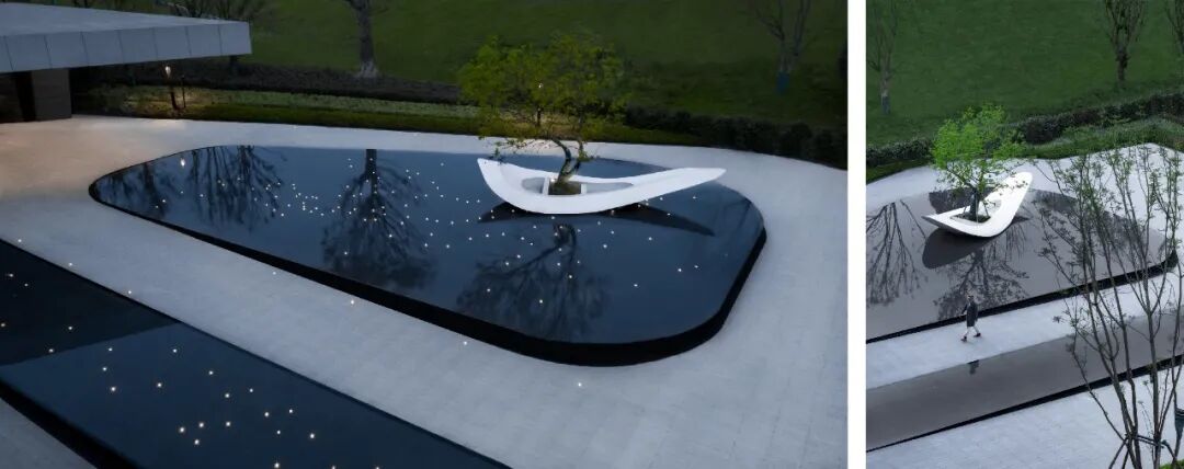 在星光灯的点缀下整条水渠更像是一条星河,流淌于场地中,形成点、线、面的互动。