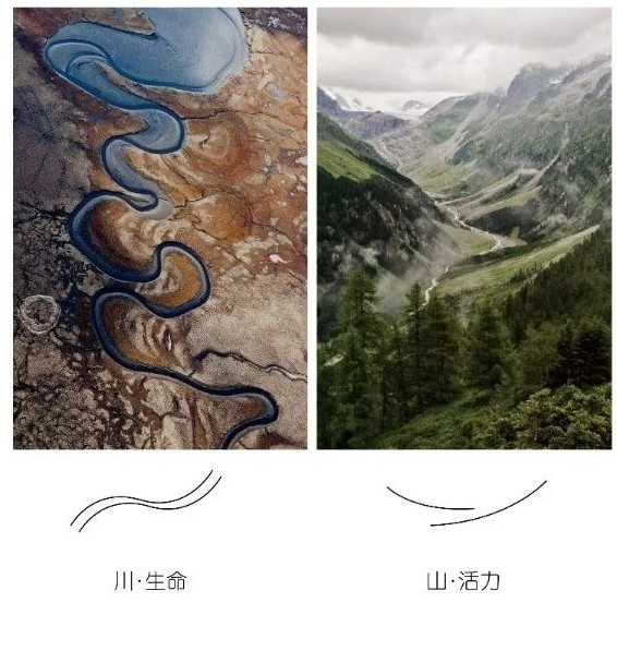 设计从一条生命脉络出发,通过时间的演变和自然的冲刷形成百川、山脉这两条自然脉络。这些自然界中的奇观蕴藏着成都千年的文化底蕴,也是这片土地文脉延续的根基。