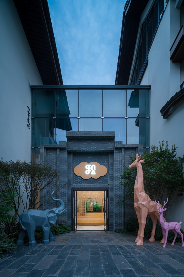 与此同时,“中国式父母”的教育理念往往让亲子关系处于紧绷的状态,如何做一个张弛有度的父母,如何在学和玩儿之间寻求平衡?设计师强调“恰当距离的情感”这个因素是亲子交流中的核心。乐贝亲子民宿乐园由 “情感设计 ” 出发,重点探讨亲子互动关系 。由狮子、大象、斑马和鹦鹉四种不同的动物分别传达四种不同的个性特质:交流、探索、勇气和智慧,希望用 “ 玩中学习,学习中玩 ” 的思维方式构建一个亲子乐园。让小朋友在乐园中游玩的过程中,加深与家长的交流与互动,领悟到自然教育的意义。
