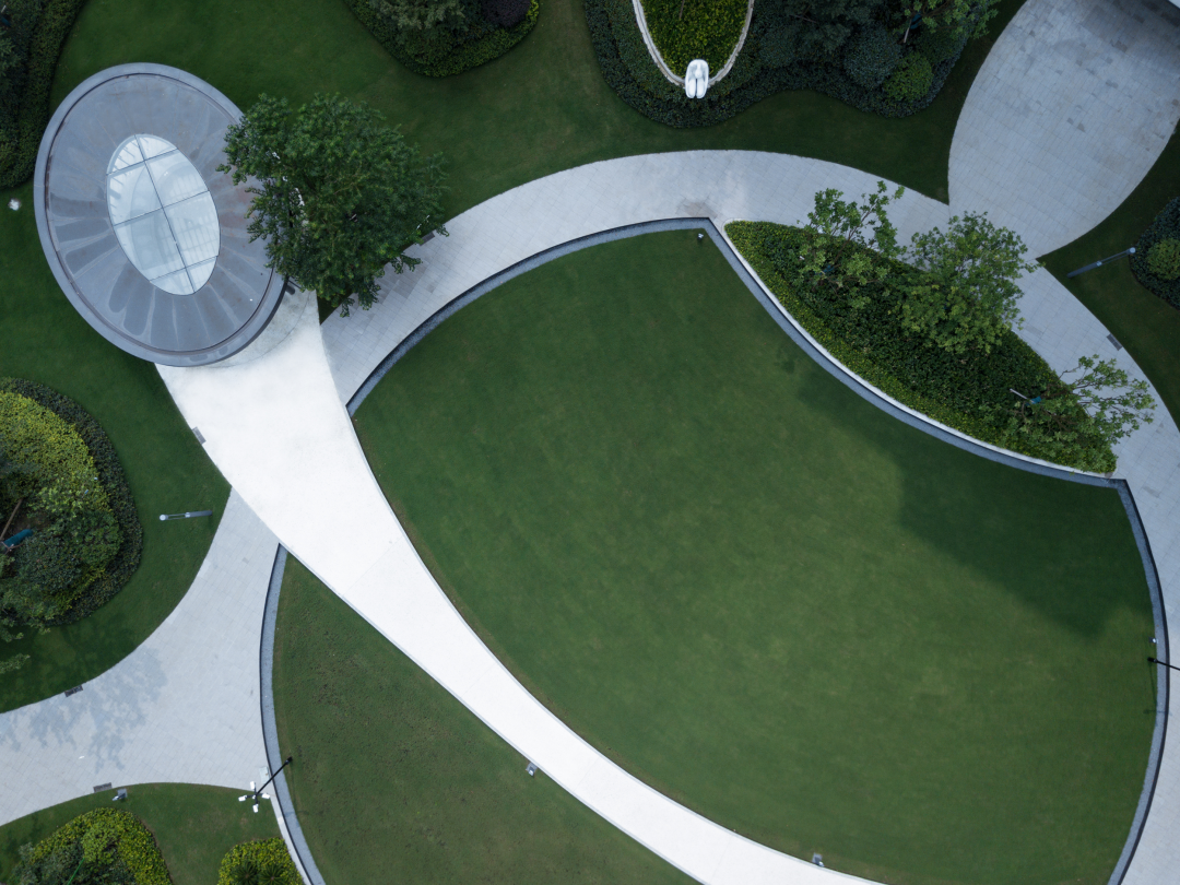 ▲激活草坪的每一个周界,让绿色的周界无形中向内外扩散,渗透到生活中的每一处步行系统。