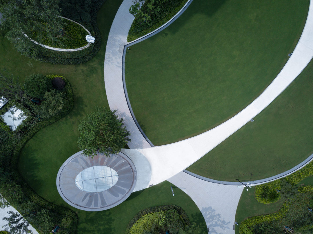▲绿盘的轻盈及浮桥的高差,步行系统的全悬浮设计,从细节诠释轻生活带来的惊喜。