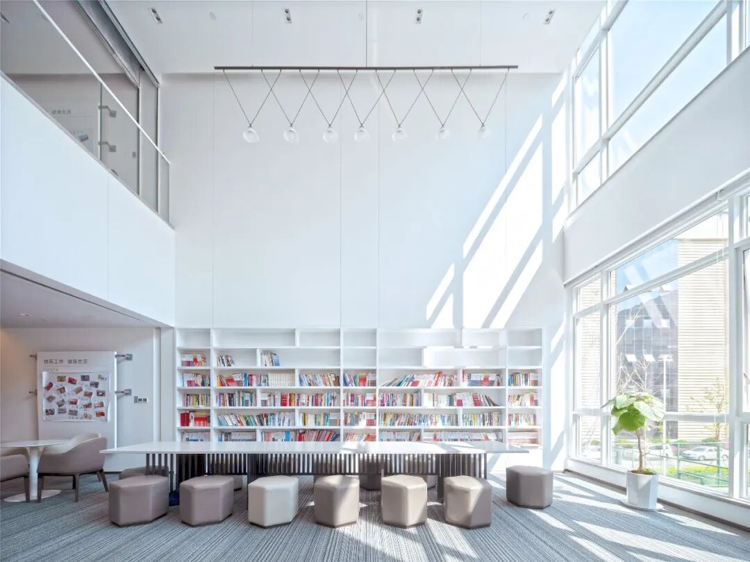 以白色为主基调,主导轻奢,文艺,愉悦,积极的建筑色调。通过对水平和垂直方向的交通组织,中庭空间及灰空间的营造,小空间的刻画,赋予趣味性及交流性,创造可以对话的空间。植入休闲、健康、生活等设施,传达企业的人文关怀。