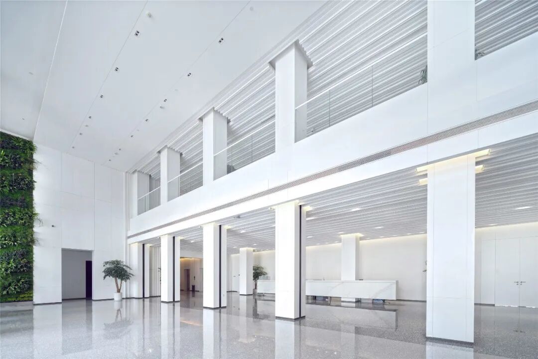 外立面简洁有力的造型是项目设计的出发点,我们希望这个简单纯粹的白色建筑能够为业主、政府和所有为俊发产品奋斗的人揭示出“信心”的深刻含义,外层幕墙由白色竖向构件组成飘逸、灵动的效果。