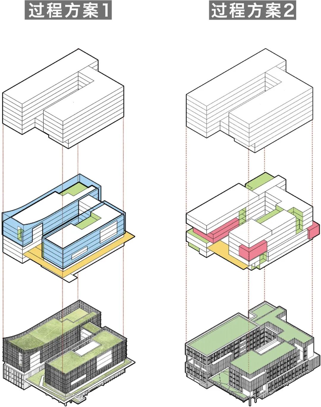 ① 建筑整体完全沿用原有维护结构,充分利用原有窗墙;