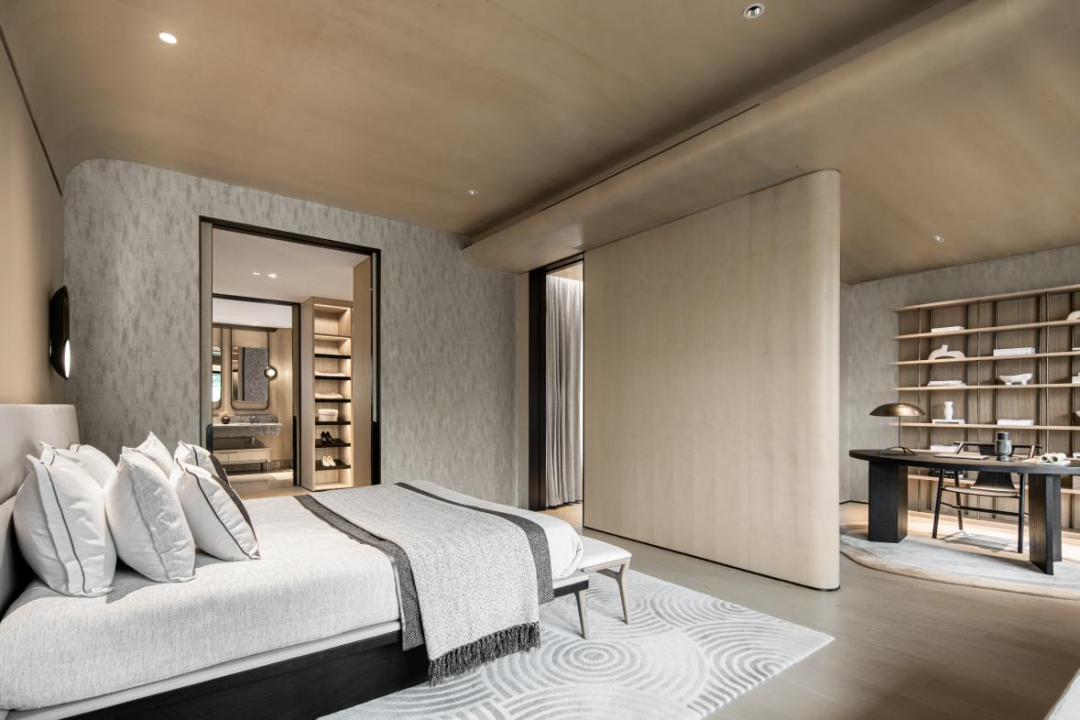 主卧大套房设计,也可做双儿童套房,各自空间互不干扰,尽享尊崇私密感。配备独立的衣帽间可改书房,层高约3.1米,阳台开间约8m,面积约12㎡,配上大面积玻璃窗,整个房间的采光效果更加显著,还有极佳的视野远眺樵坪山。屋顶交付为坡屋顶,可根据喜好来设计打造别具一番风味的吊顶设计。