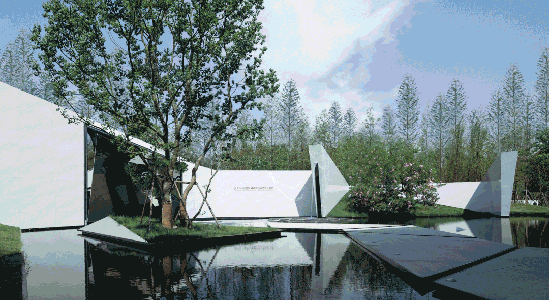 几棵影影绰绰的丛生乌桕点缀于水面之上,折线道路引领人们进入这处星光水景。